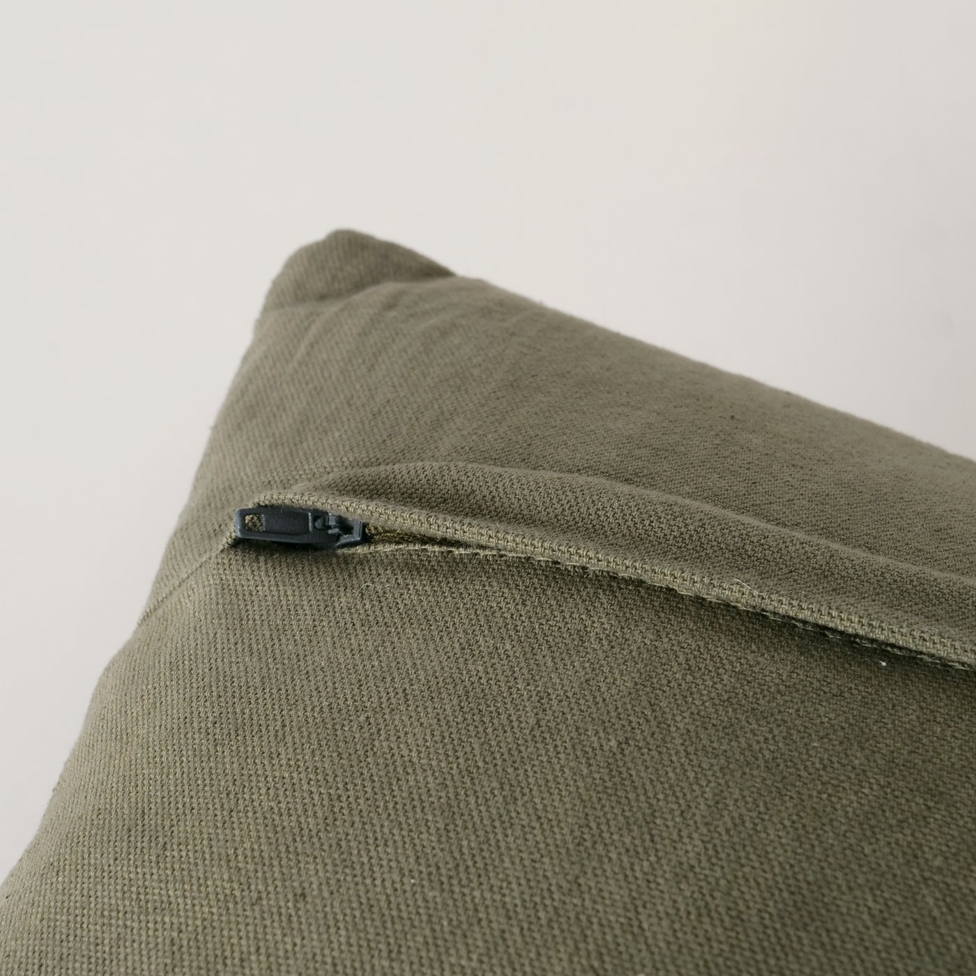 Baumwoll-Leinen Kissen Ramoni, Blumenkissen salbeigrün, rosa-beige bestickt, 45x45cm, Boltze Home Co