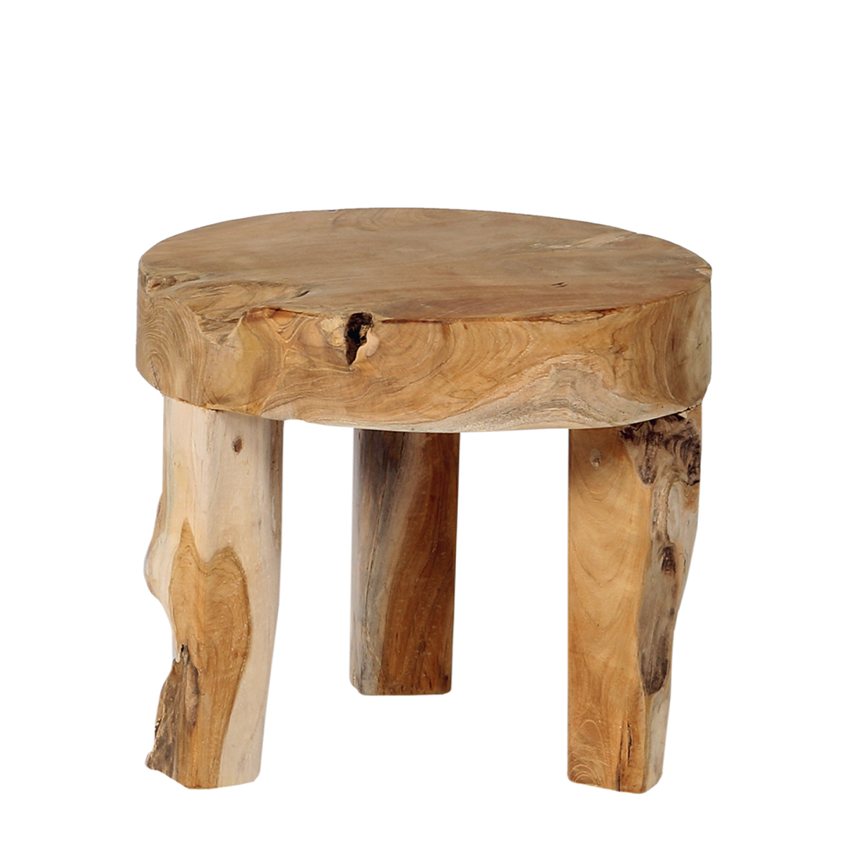 Beistelltisch Erosi Teak, unregelmäßiger rustikaler Teakholztisch auf 3 Beinen, WMG Grünberger