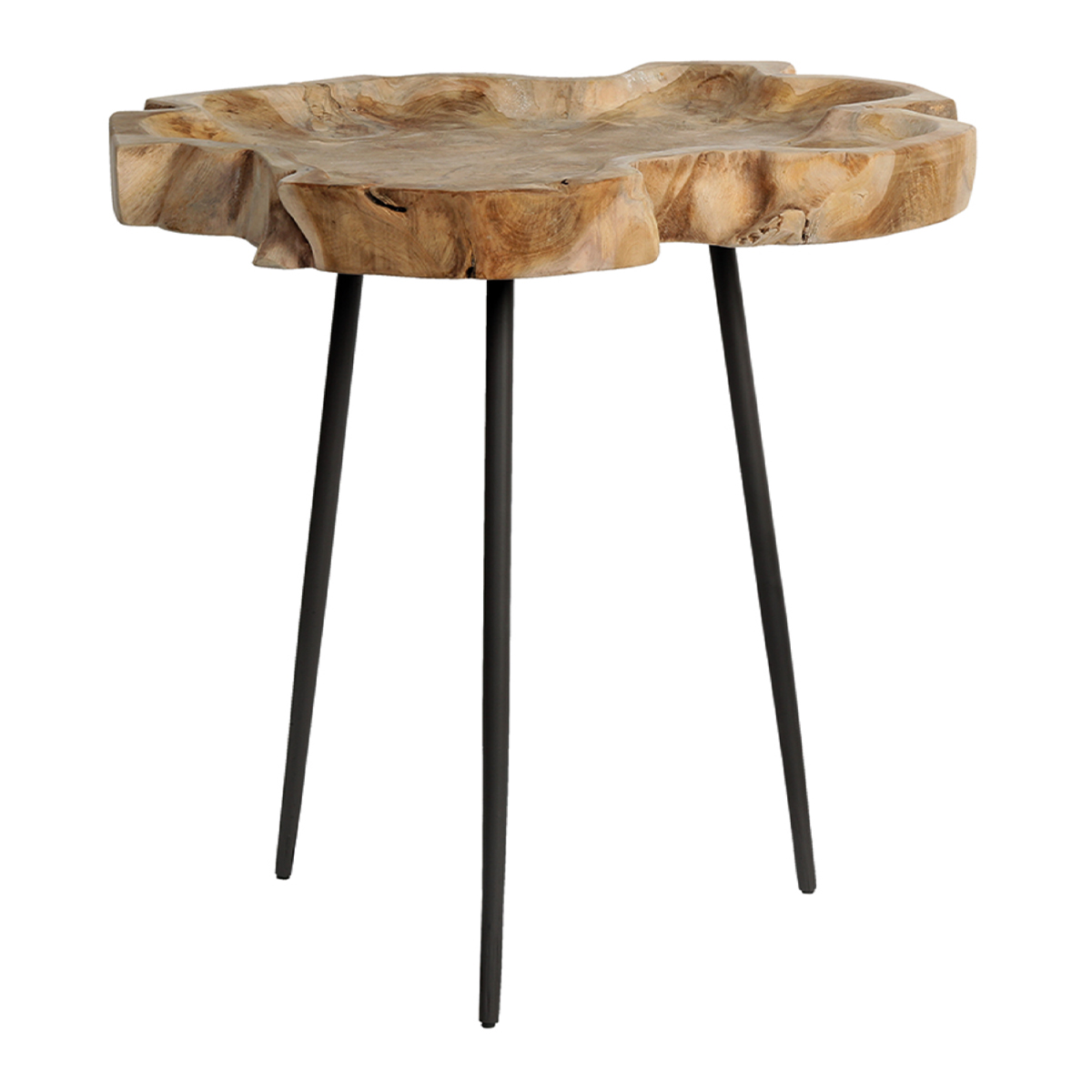 Beistelltisch Teak unfinish, unregelmäßige rustikale Teakholzscheibe auf 3 Beinen, WMG Grünberger