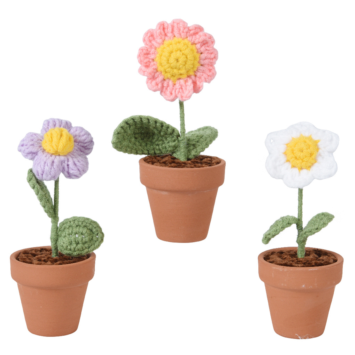 Deko Blume gehäckelt, Wollblume im Keramiktopf, weiß-gelb, 14cm