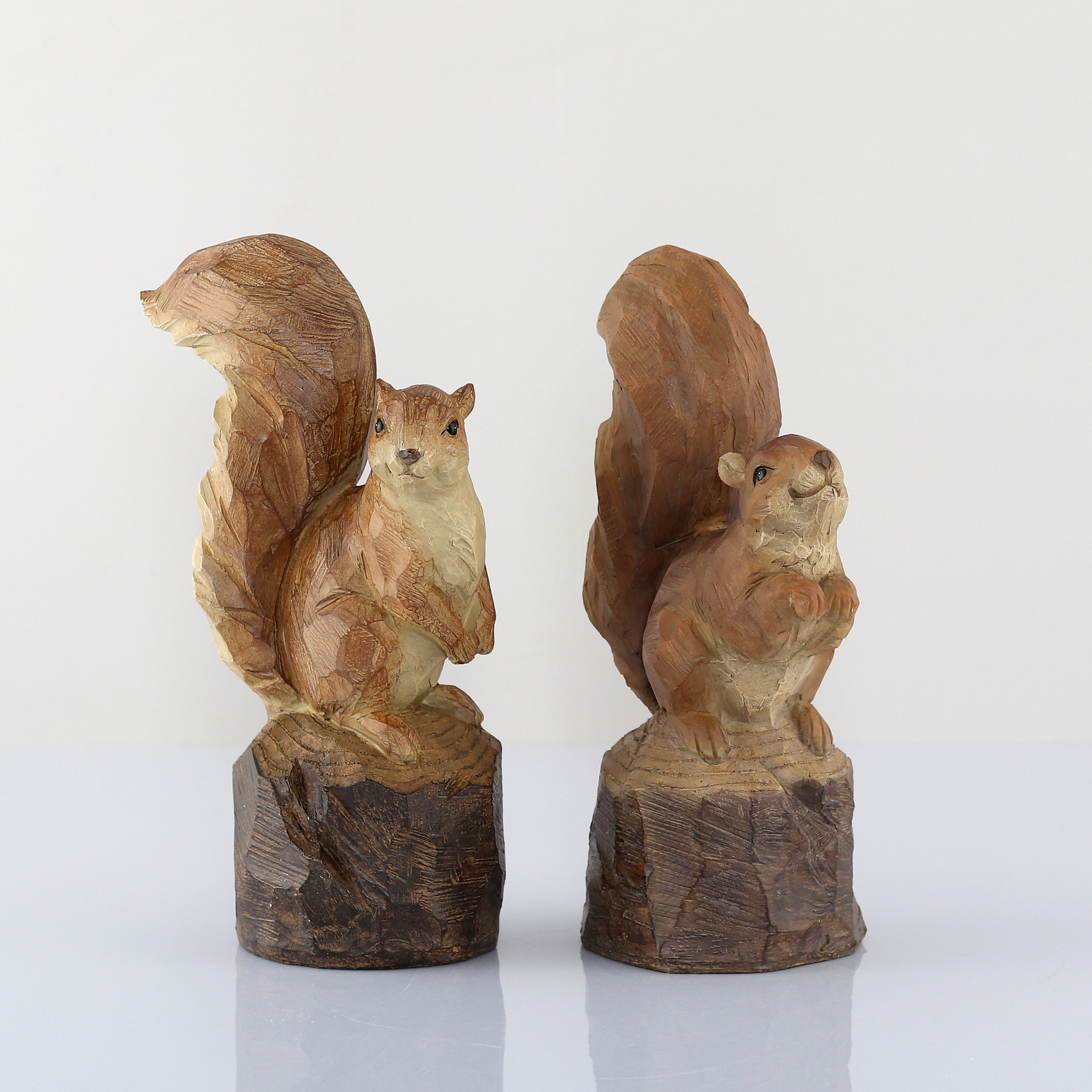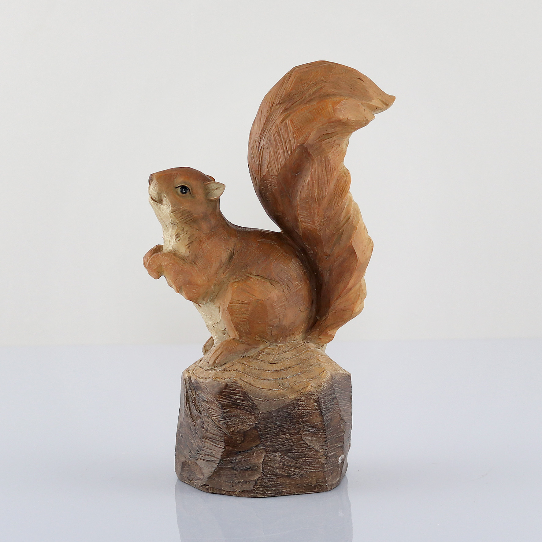 Deko Eichhörchen auf Stamm, Eichhörchen in Holzoptik, 33cm, Resin