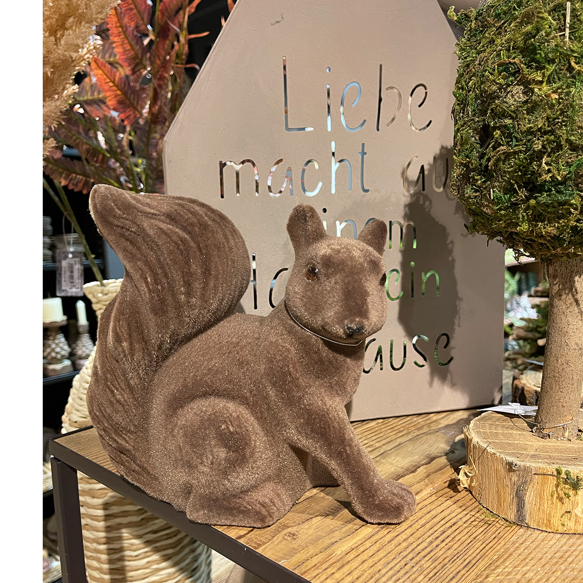 Deko Eichhörnchen samtlook braun, Kunststoff Eichhörnchen, 18cm