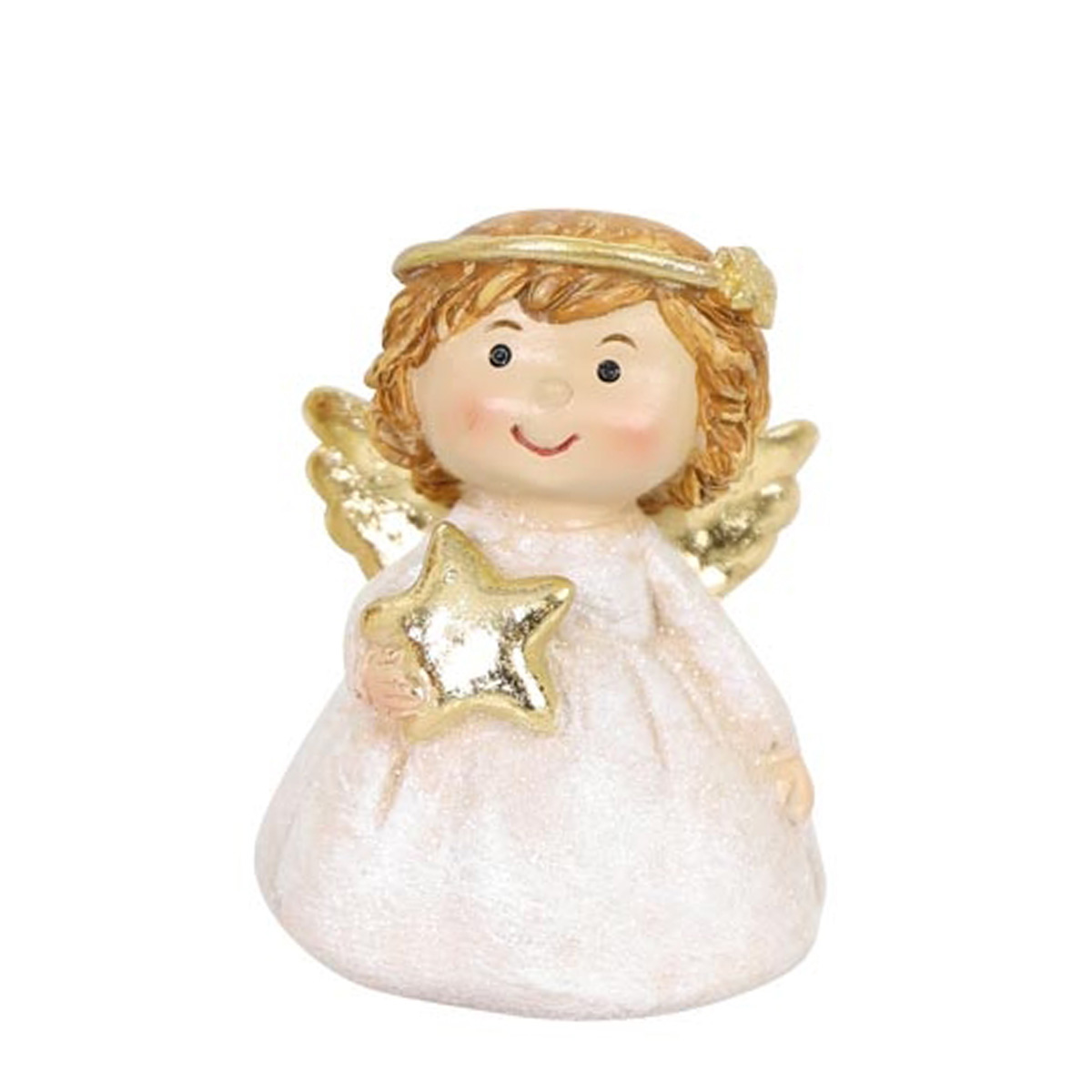Deko Engel Lilian, kleiner putziger Weihnachtsengel mit goldenem Stern oder Herz, 7cm