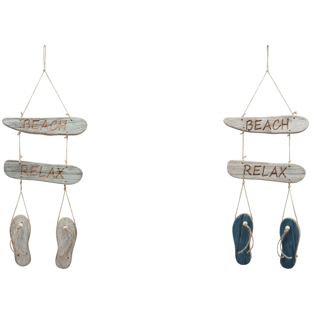 Deko Flip Flop grau aus Holz zum Hängen, Holzschild Beach Relax, 54cm