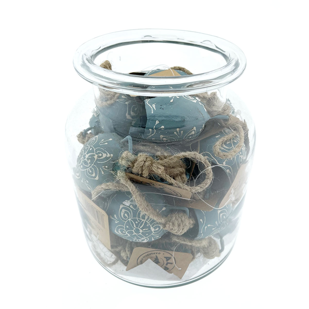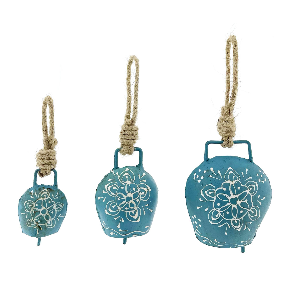 Deko Glocke blau mit Klang, Kuhglocke mit Blumenmuster blau-weiß, 5cm