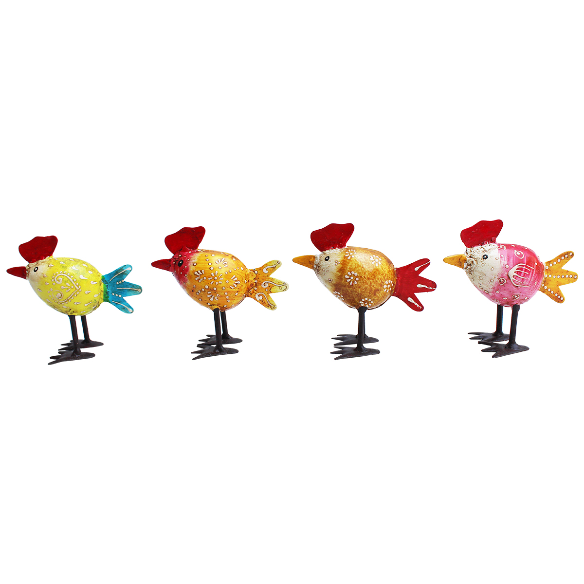 Deko Hahn eiform, kleiner Metallhahn orange mit rotem Schweif, 8x9cm