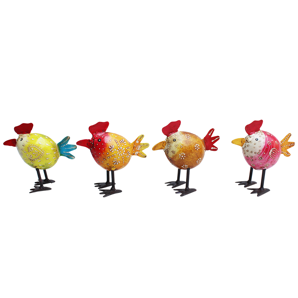 Deko Hahn eiform, kleiner Metallhahn orange mit rotem Schweif, 9x10cm