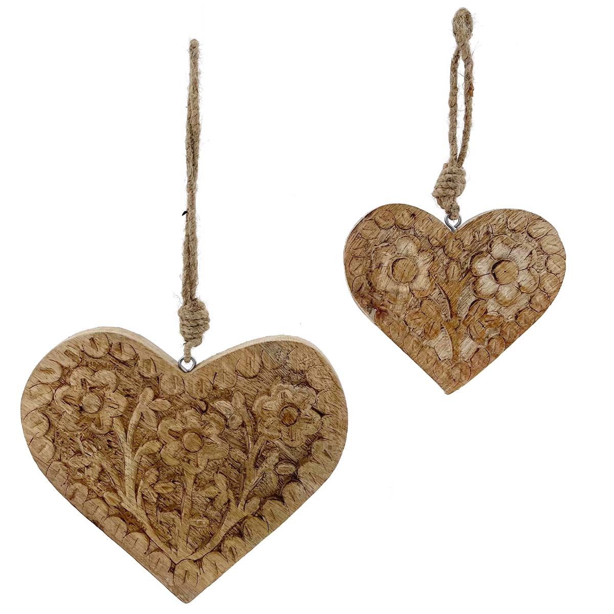 Deko Herz mit Blumenmuster, Holzherz mit Relief 2 Blumen, 11x10cm, Hänger