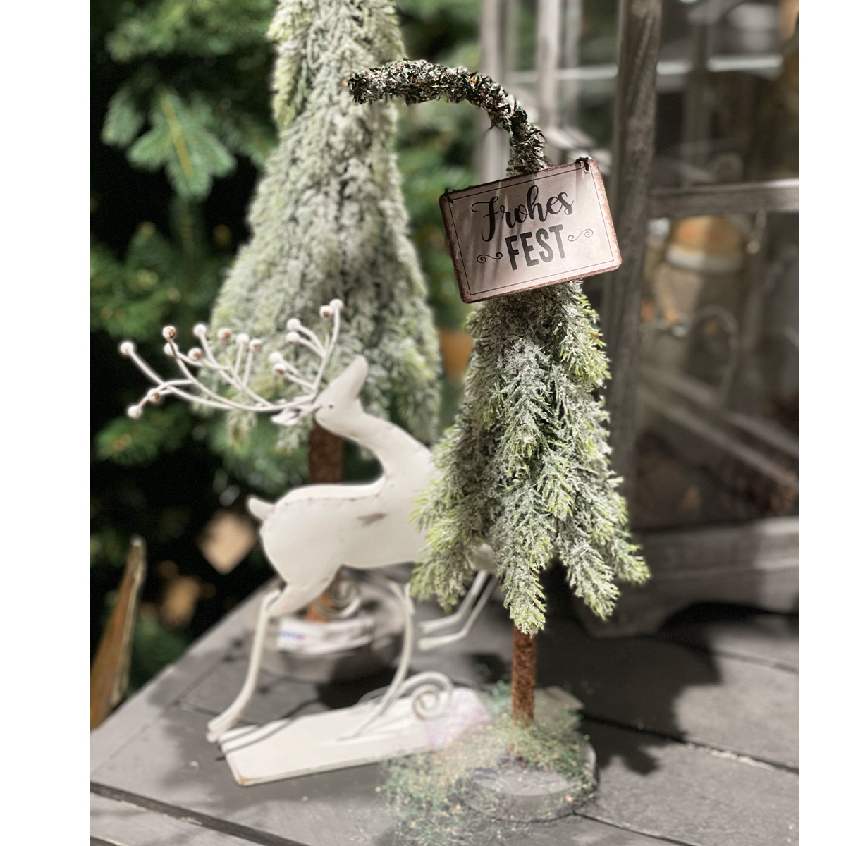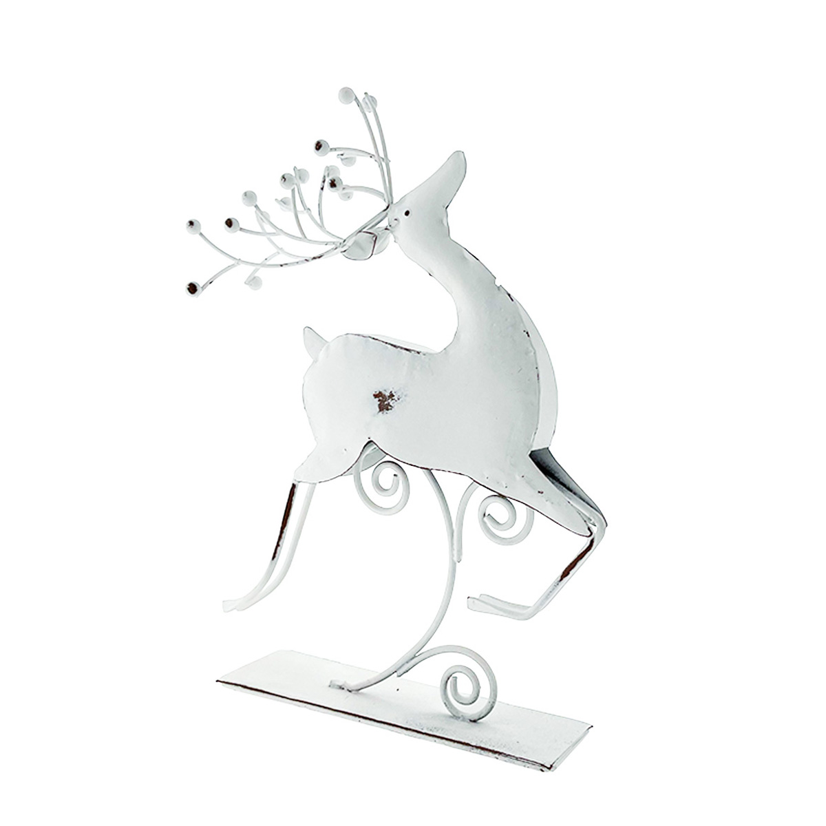 Deko Hirsch, filigraner Metallhirsch weiß unfinish, used look, 22x17cm, auf Metallfuß