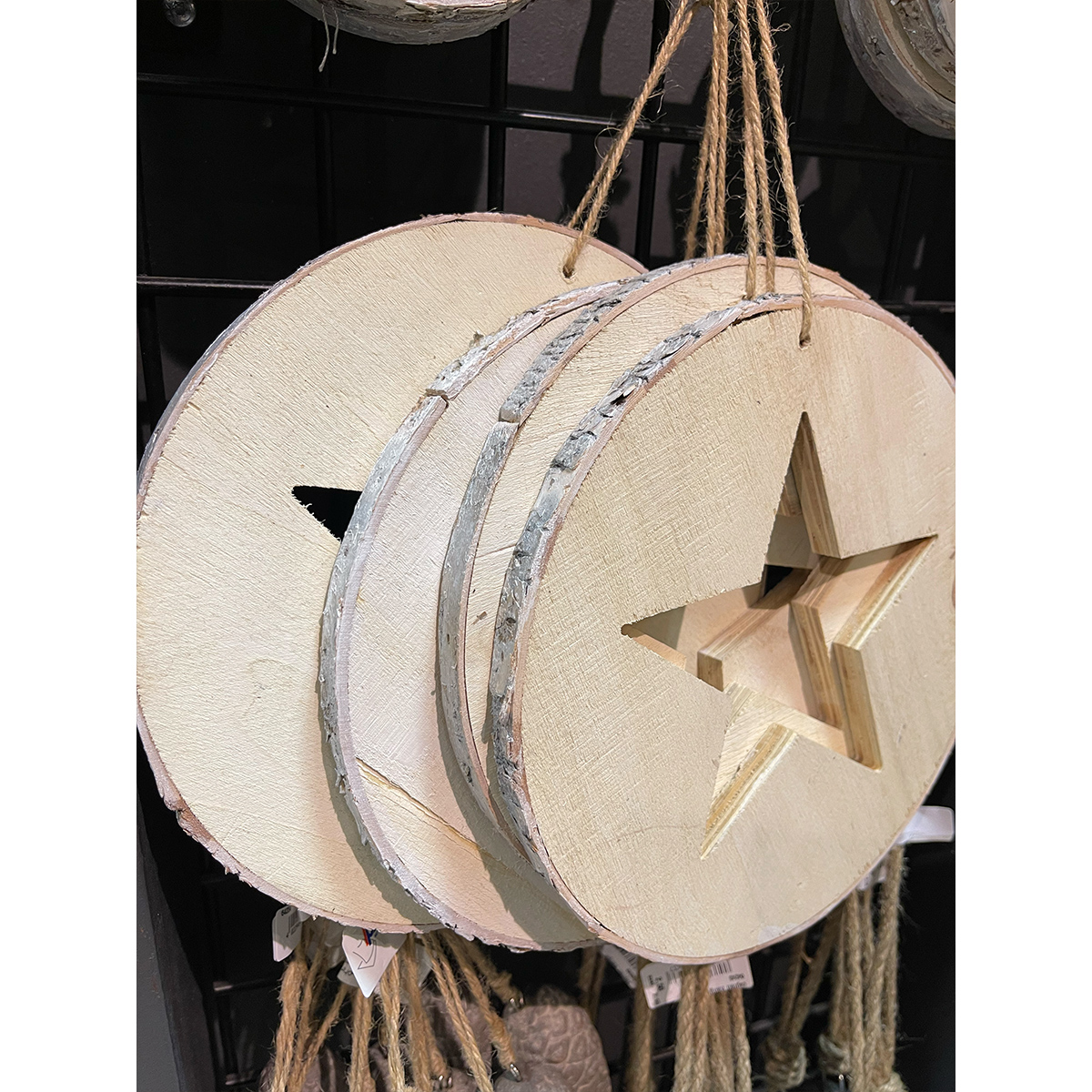 Dieser runde Holzhänger aus Birkenholz mit ausgeschnittenem Sternmotiv ist eine dekorative und natürliche Gestaltungsidee für dein Zuhause.