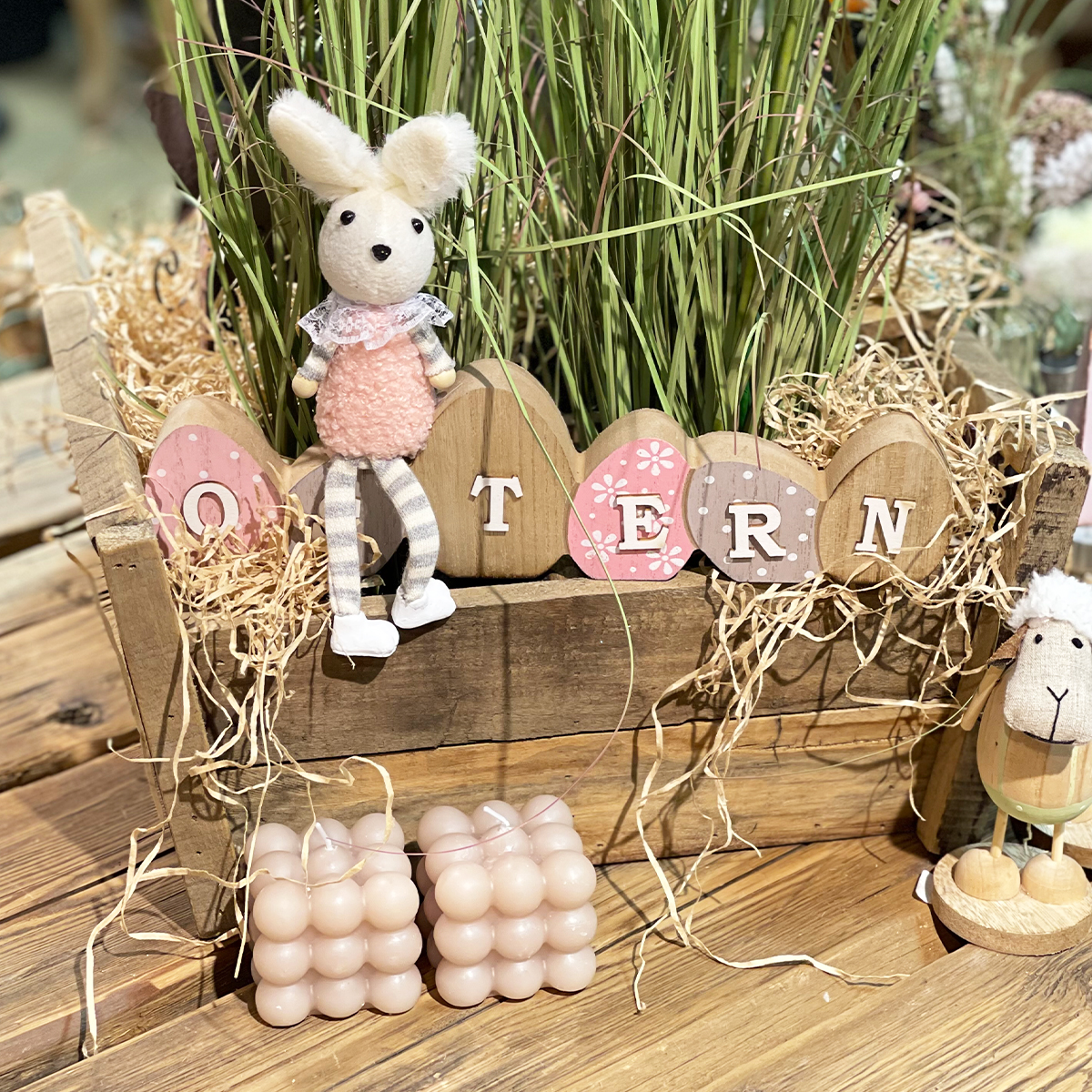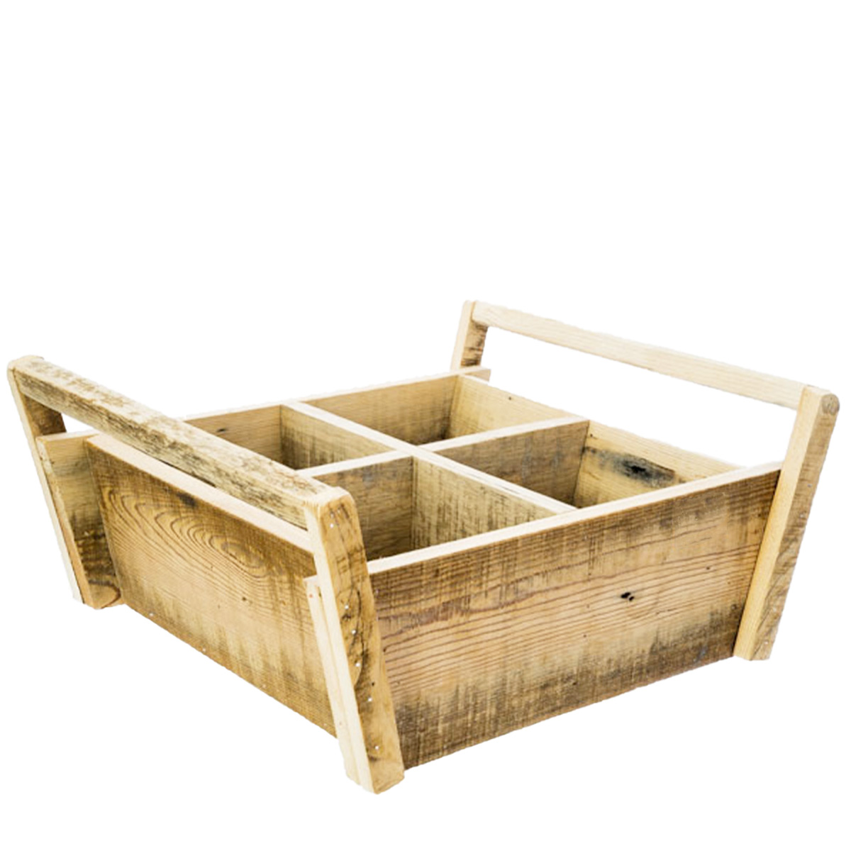 Deko Holzkiste Naturholz, Pflanzkorb mit 4 Unterteilungen und Griffe, 35x34cm