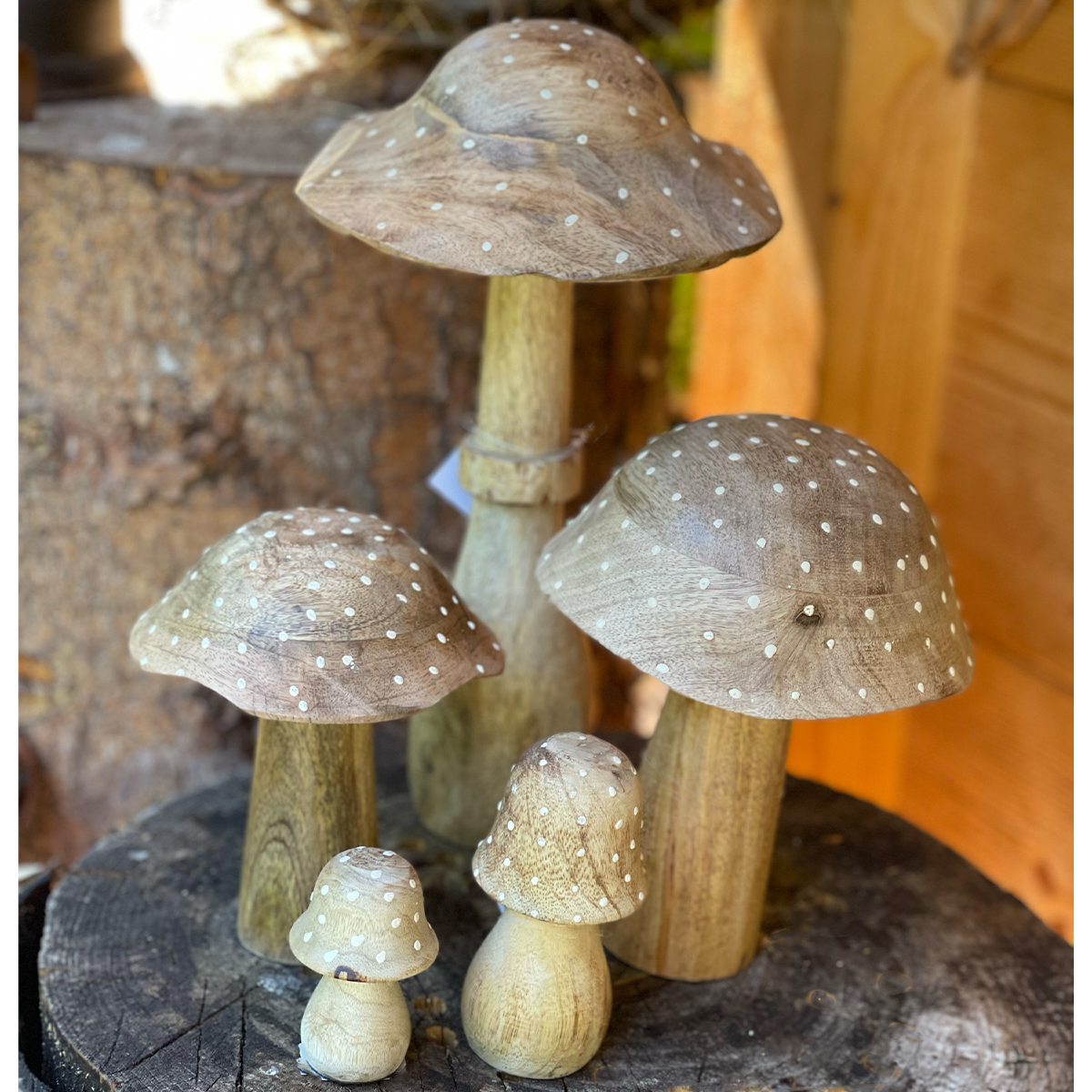 Deko Holzpilz, Fliegenpilz natur, breite Kappe, 15x13cm