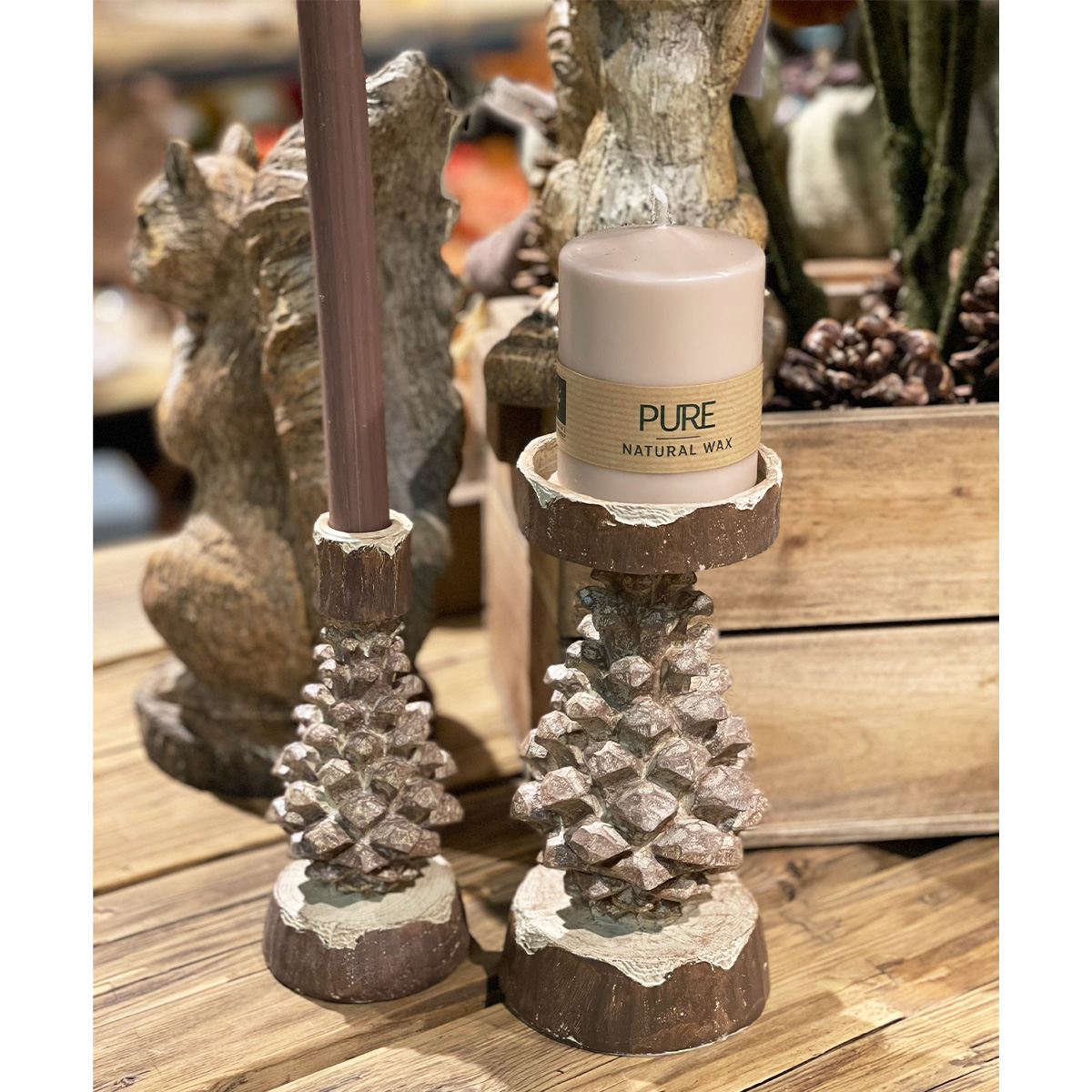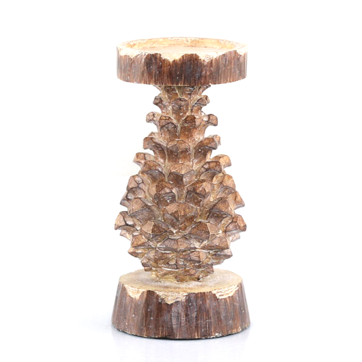 Deko Kerzenhalter Kiefernzapfen, Kerzenständer in Zapfenform, braun-grau used look, 22cm