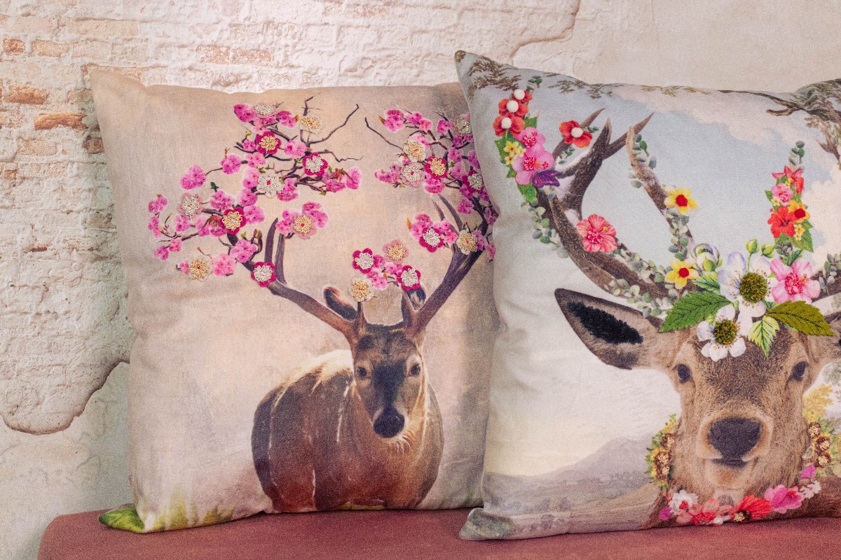 Deko Kissen Hirsch Fleury, Hirsch mit Kirschblüten, 45x45cm, Mars & More