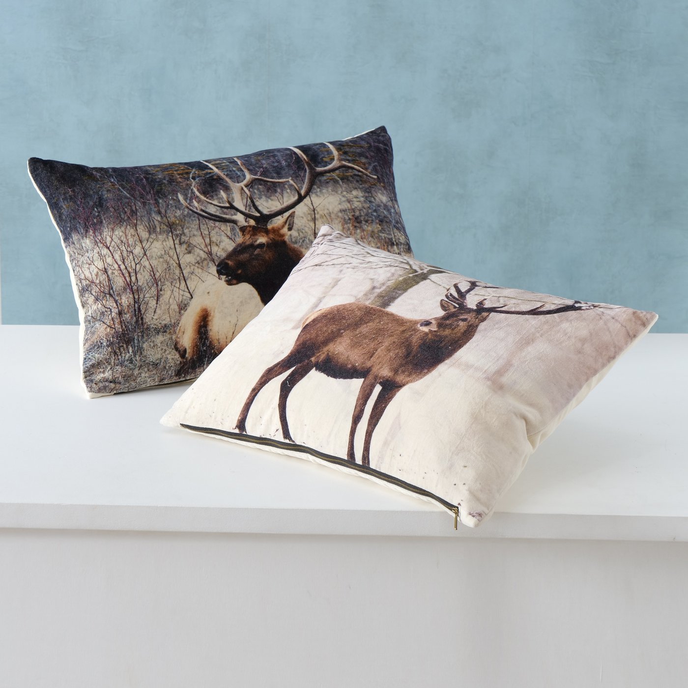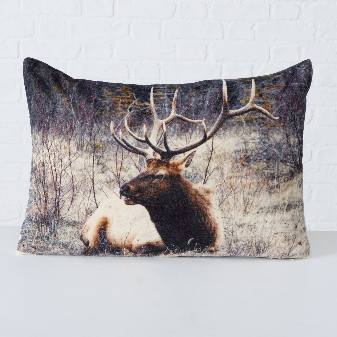 Deko Kissen Hirsch Palco, Samtkissen Winterhirsch liegend, 40x60cm, Boltze Home Collections