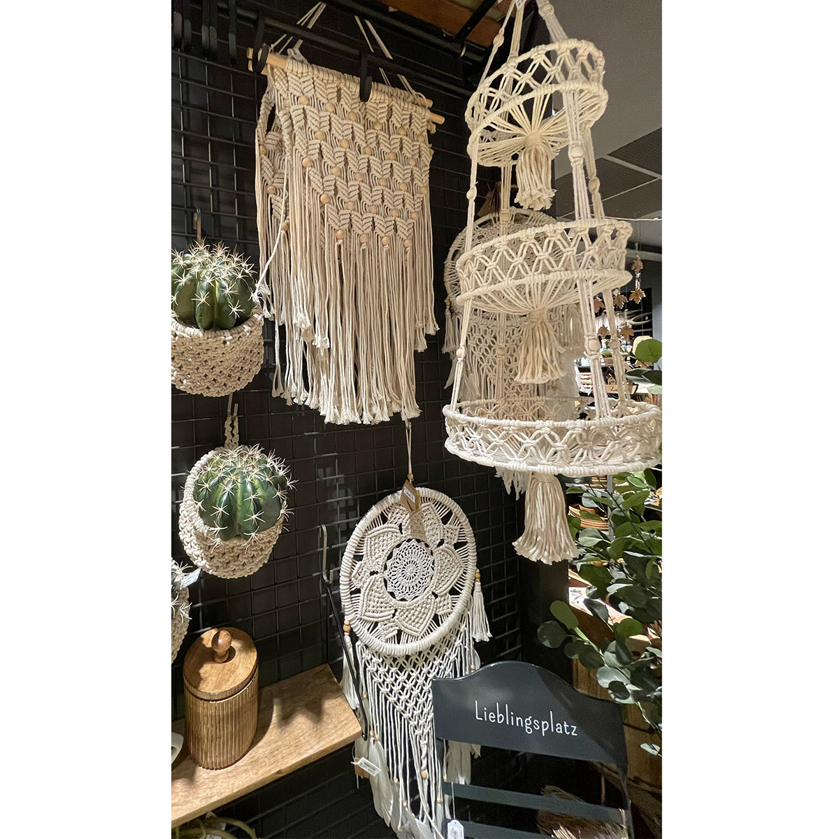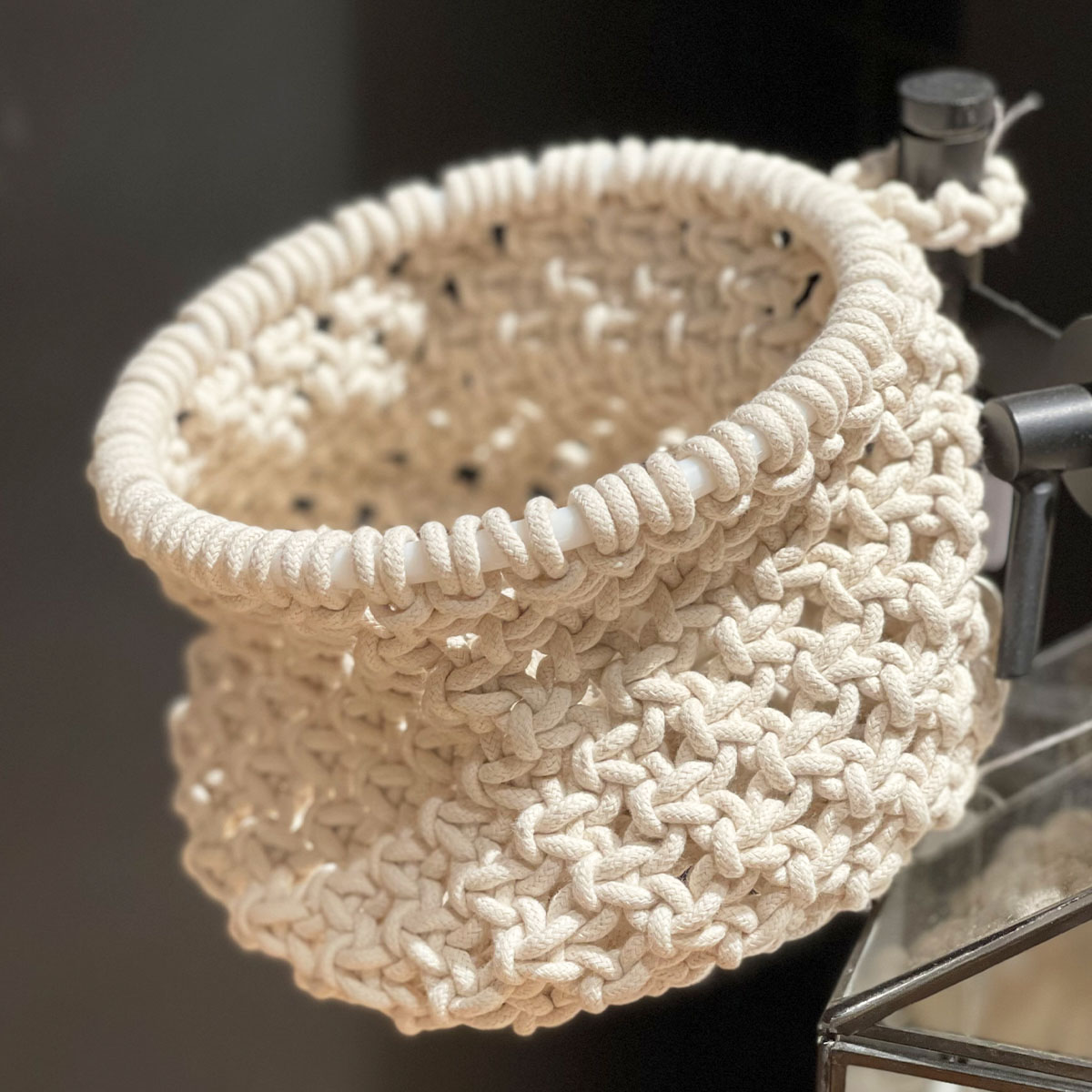 Deko Korb Boho gehäckelt, Makramee-Korb mit Schlaufe, 16x13cm