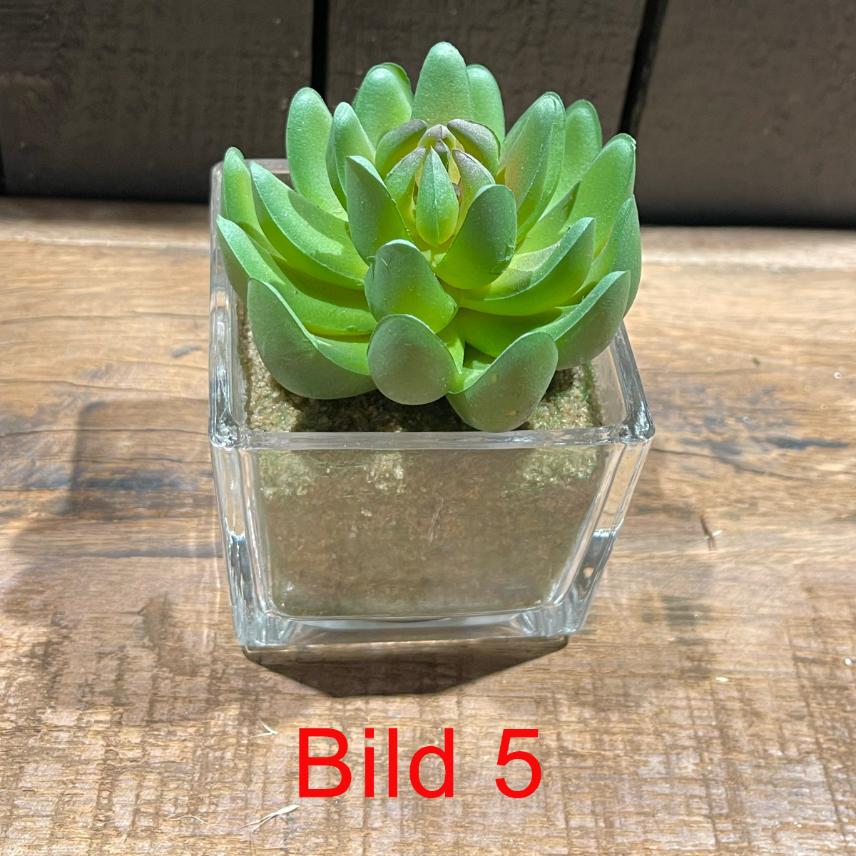Deko Kunstpflanze Sukkulente im im Glas, Sukkulente wie echt, Sukkulente im Erdballen