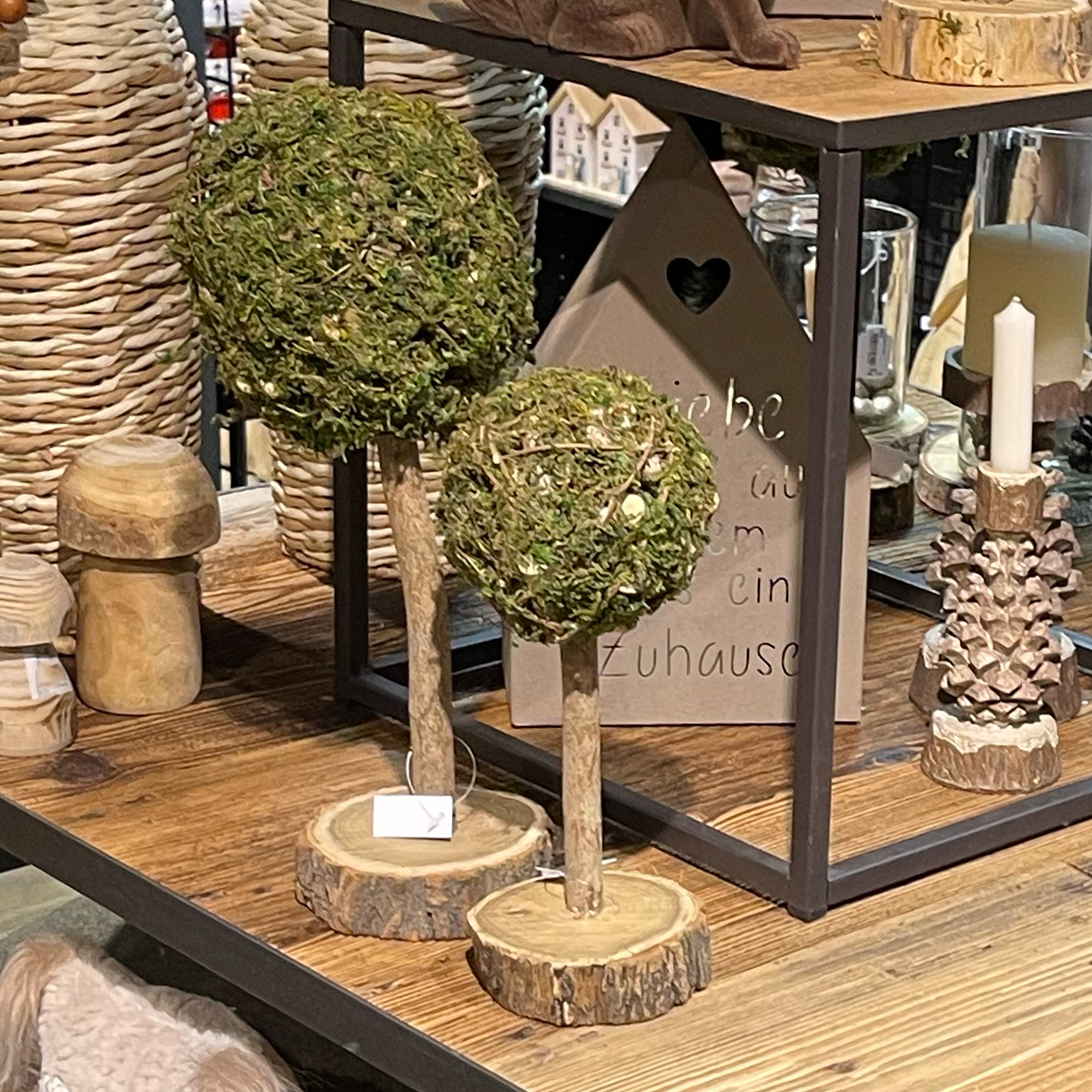 Deko Moosbaum Aride, Mooskugel auf Naturholzstamm, 30cm