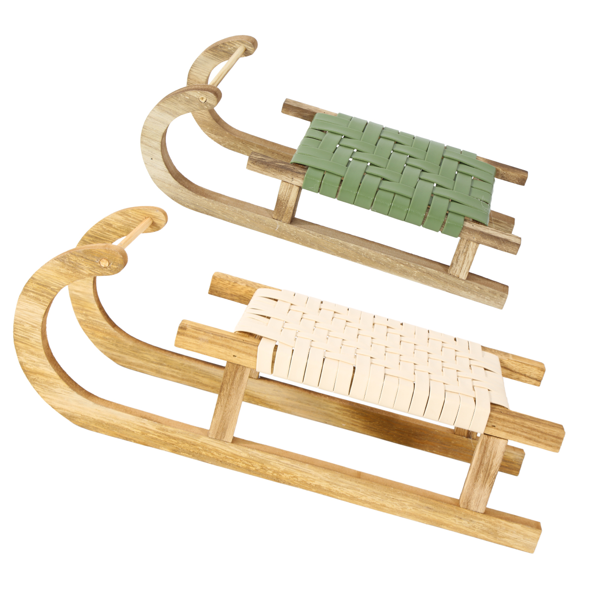 Deko Schlitten, Holzschlitten creme-grün, 24cm