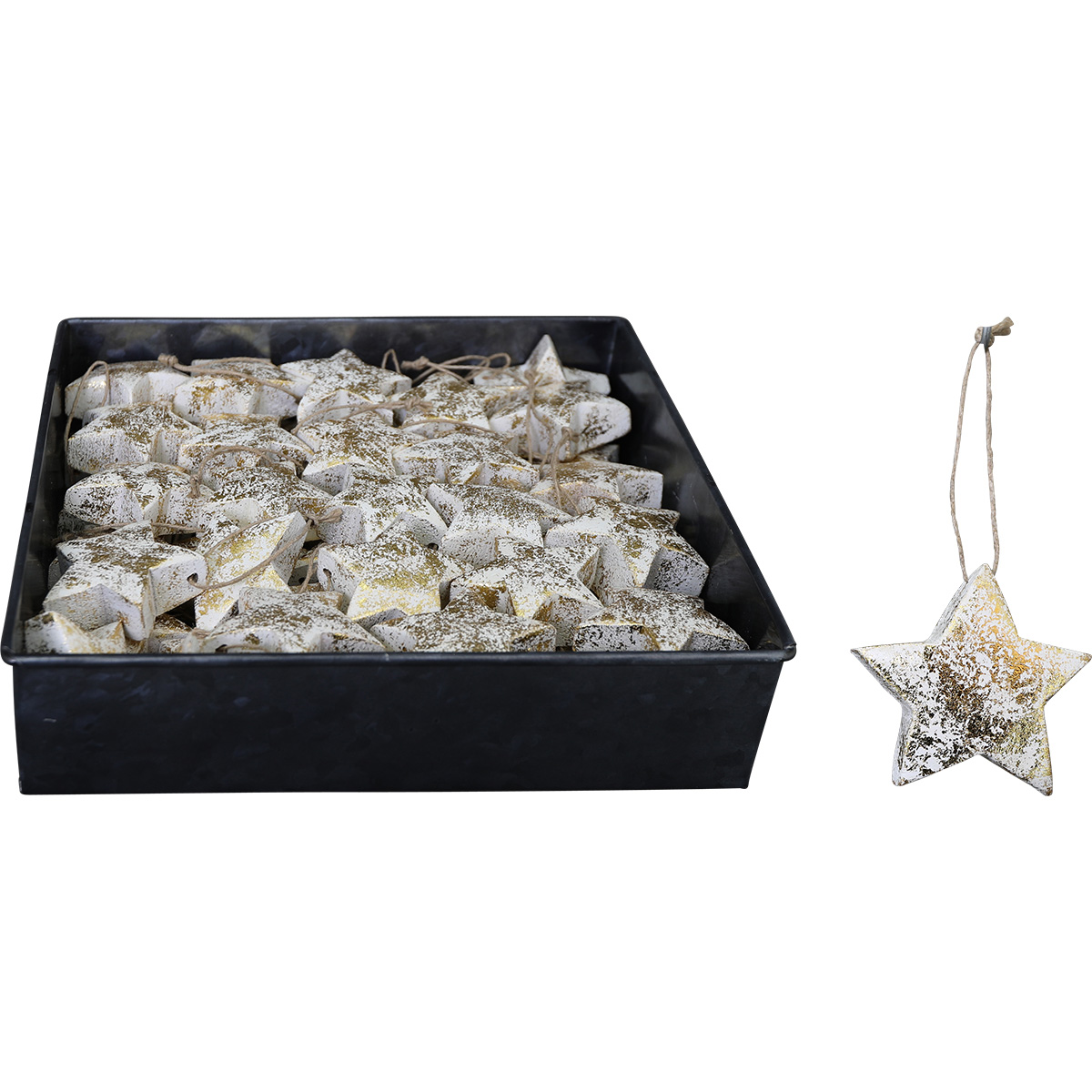 Deko Stern Antiklook, dicker weißer Holzstern mit goldene Akzenten, 5x5cm, Hänger
