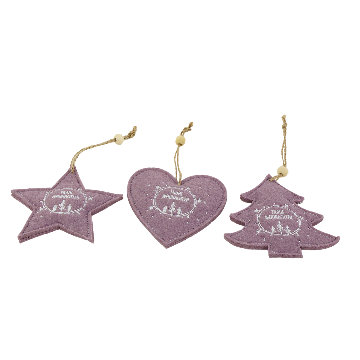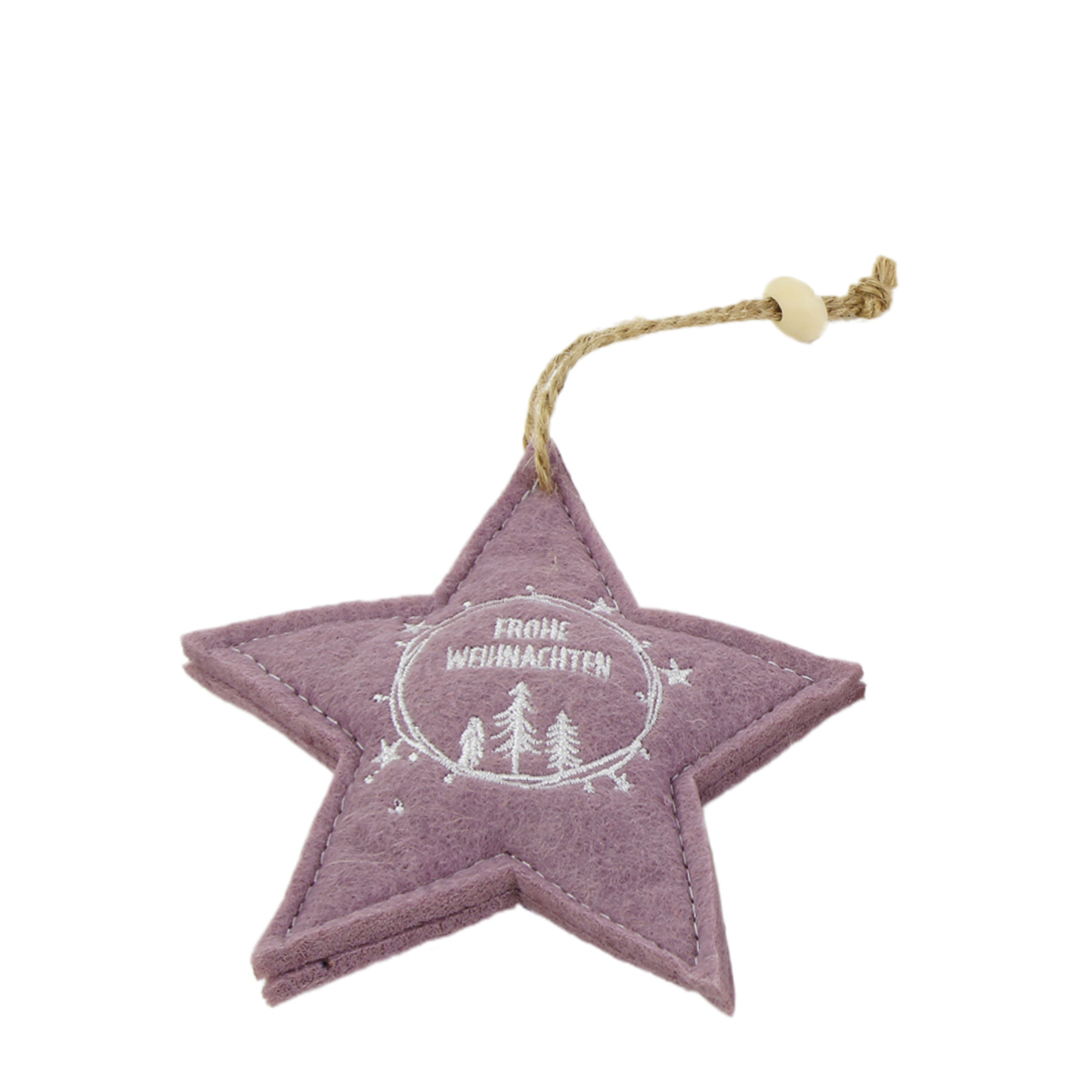 Deko Stern Weihnachten, Filzstern Frohe Weihnachten, beere, 10x11cm, Hänger