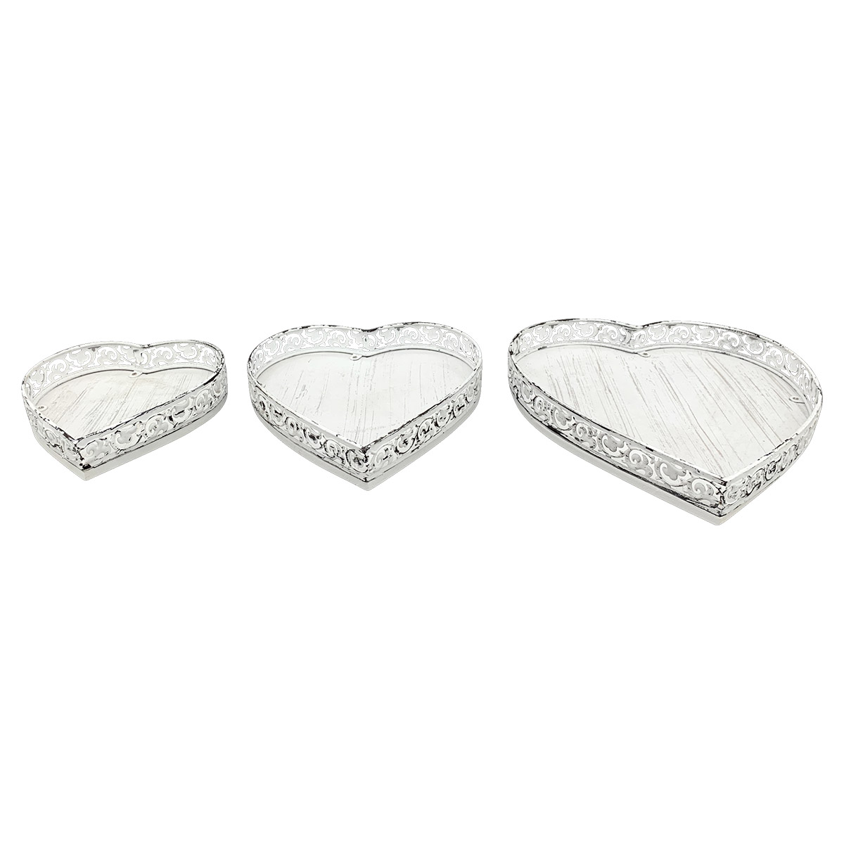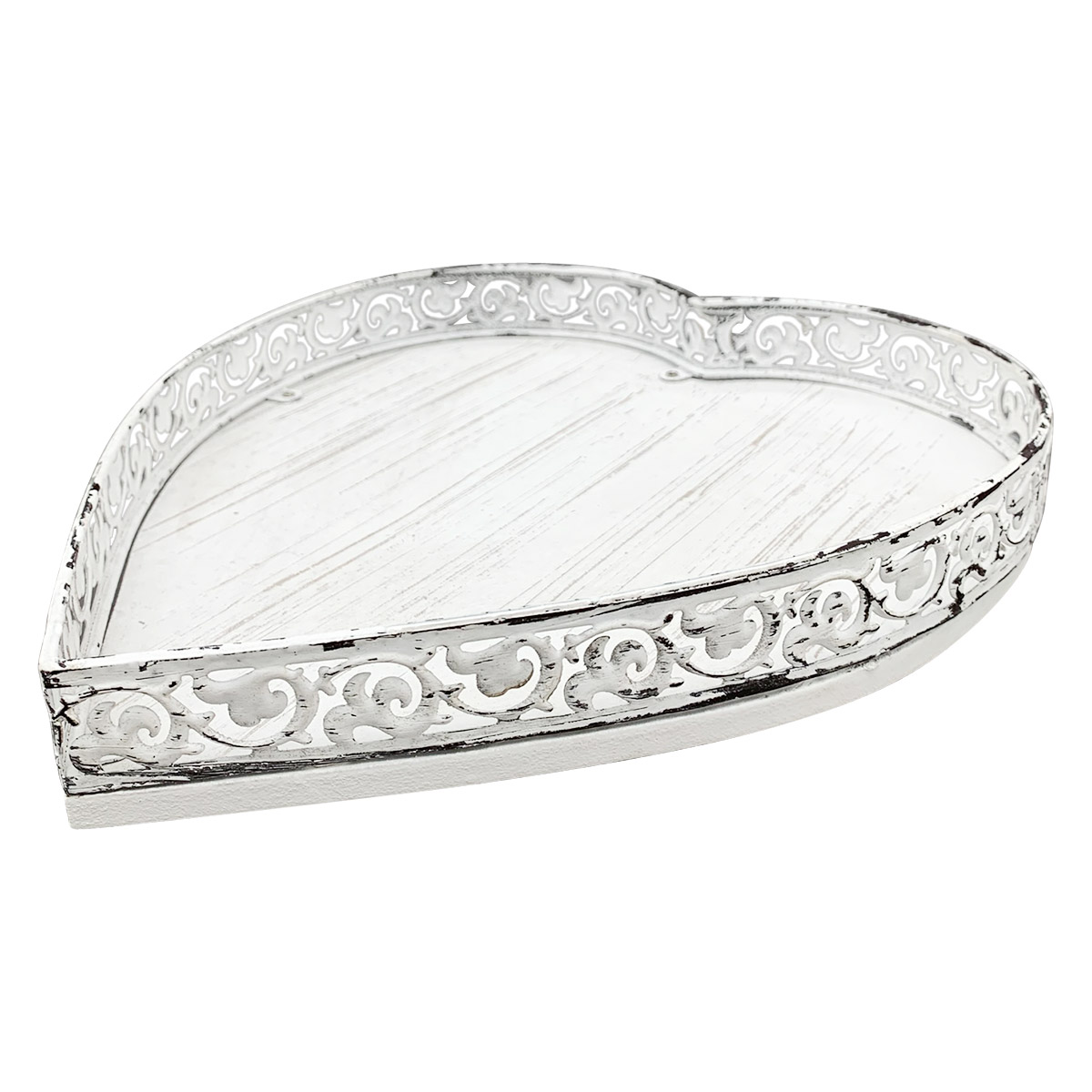 Deko Tablett Herz weiß, Metallschale mit Muster - used look, 25x28x4cm
