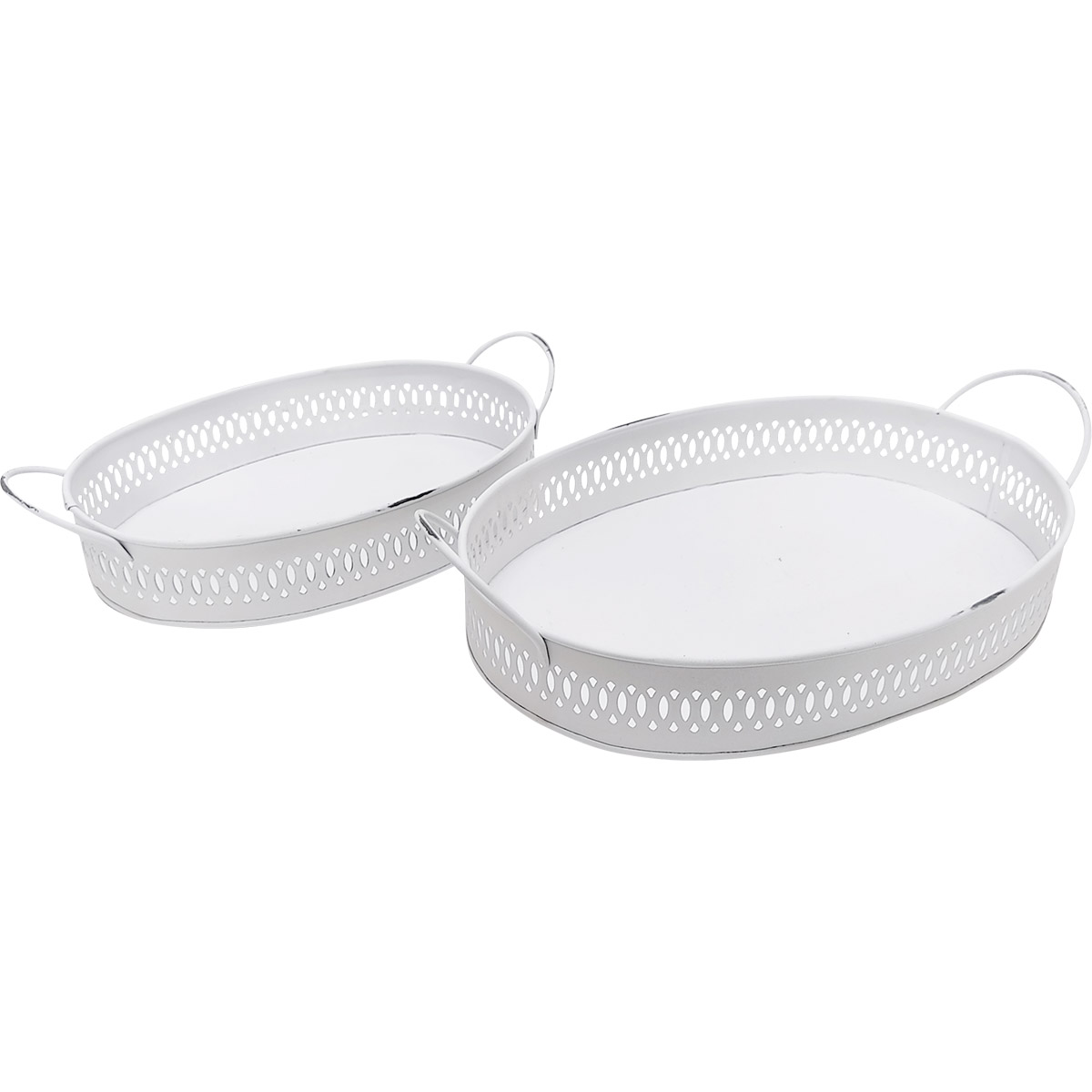 Deko Tablett weiß durchbrochen, Metalltablett mit Henkel - used look, 38x24x8cm