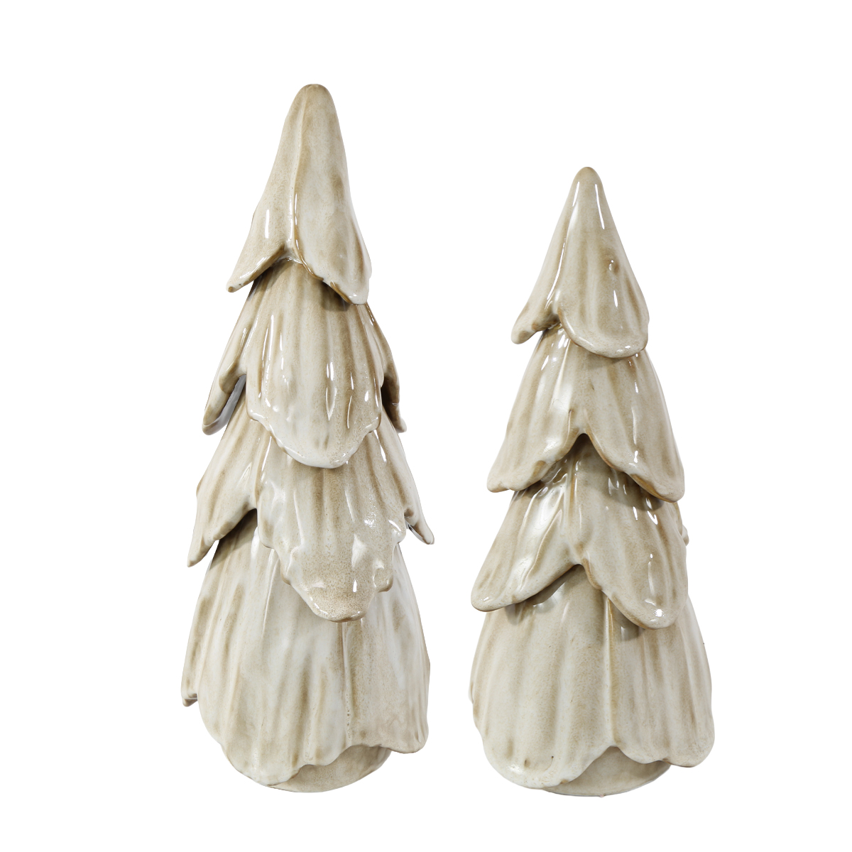 Deko Tannenbaum, schlichter Keramikbaum creme-braun, 25cm