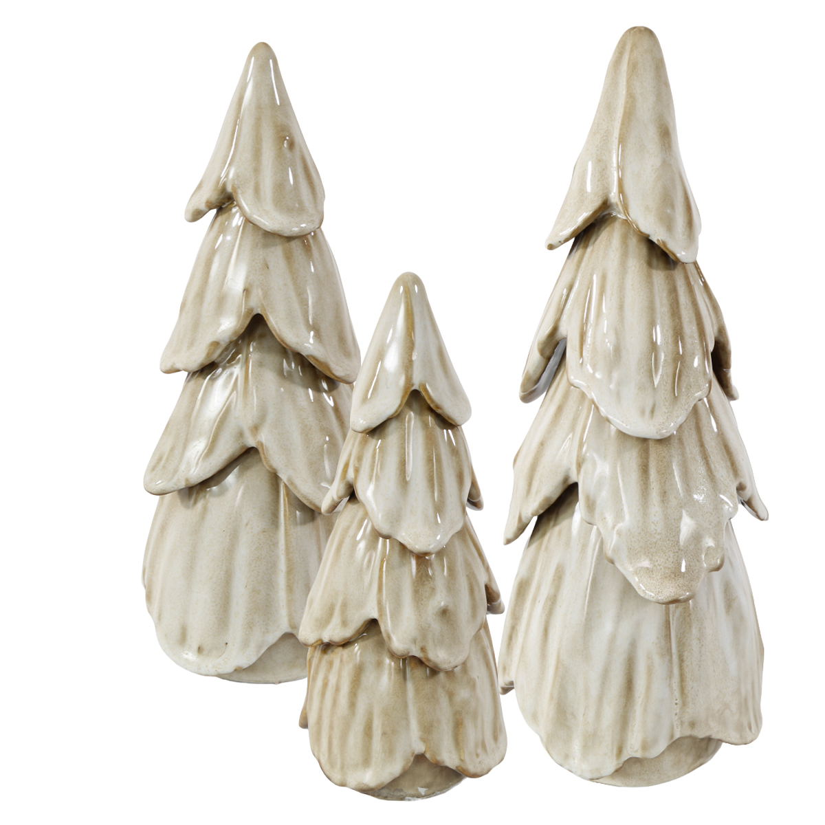 Deko Tannenbaum, schlichter Keramikbaum creme-braun, 7cm