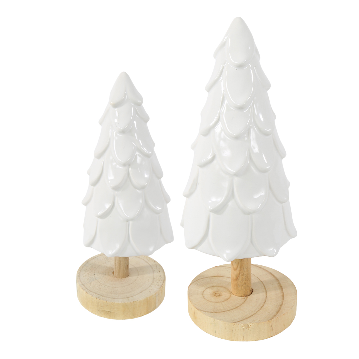 Deko Tannenbaum, weißer Keramikbaum auf Holzfuß, 27cm