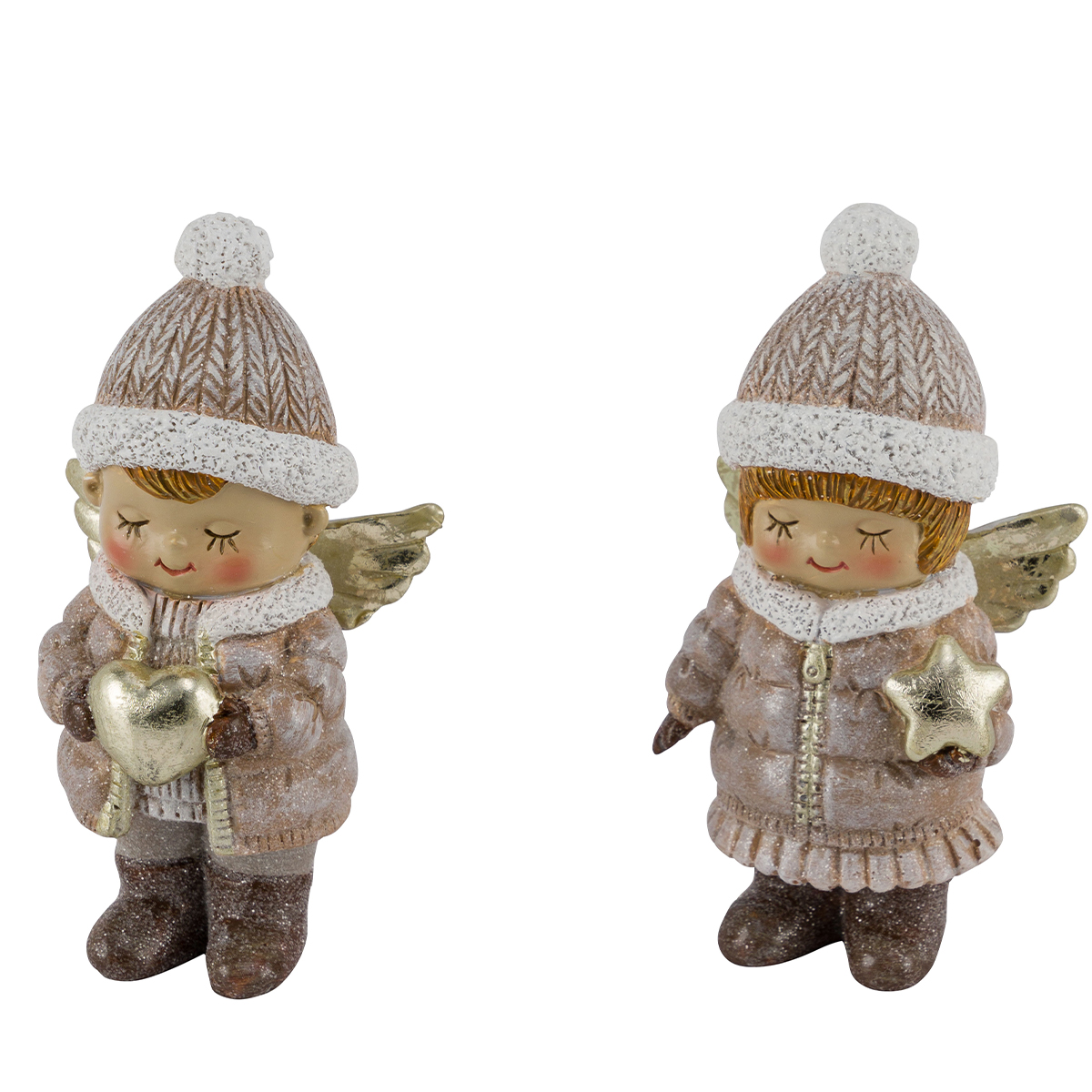 Deko Weihnachtsengel mit Herz, putzige Engel-Junge mit Pudelmütze, 11cm