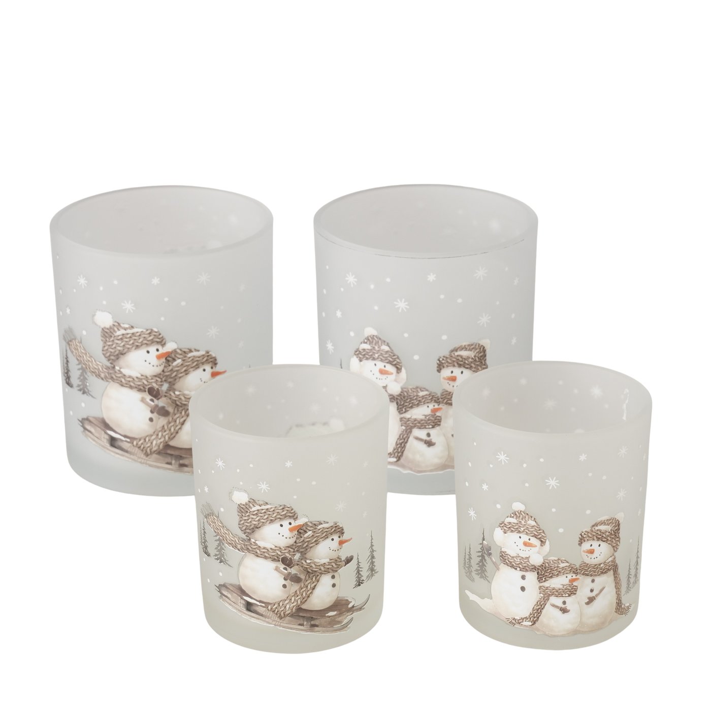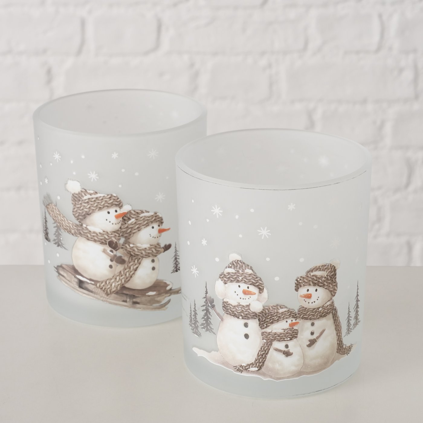 Deko Windlicht Schneemann Frosty, Kerzenglas matt, 10cm, Boltze Home Collection