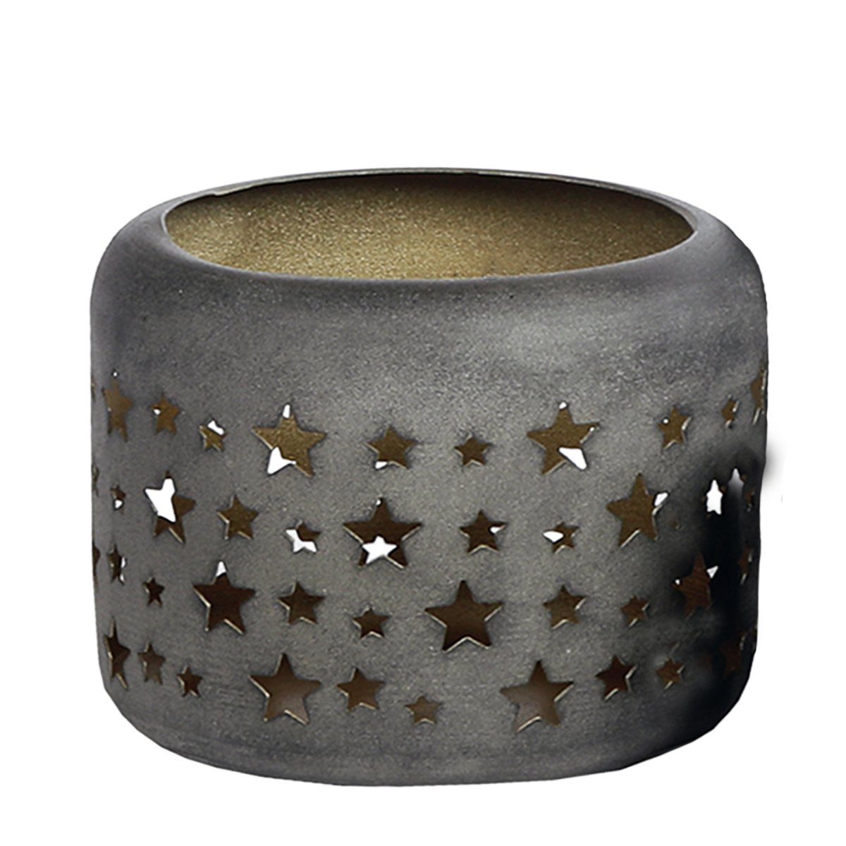 Deko Windlicht Weihnachtssterne Antik grau-gold, Metallwindlicht durchscheinend, 13cm, WMG Grünberger
