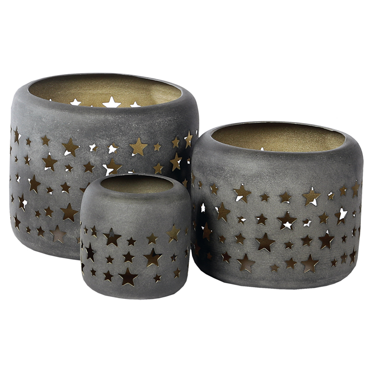 Deko Windlicht Weihnachtssterne Antik grau-gold, Metallwindlicht durchscheinend, 13cm, WMG Grünberge