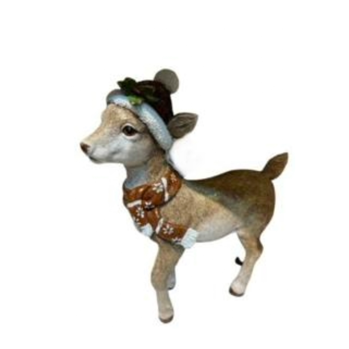 Dekofigur Bambi, kleines putziges Reh mit Mütze und Schal, 27cm