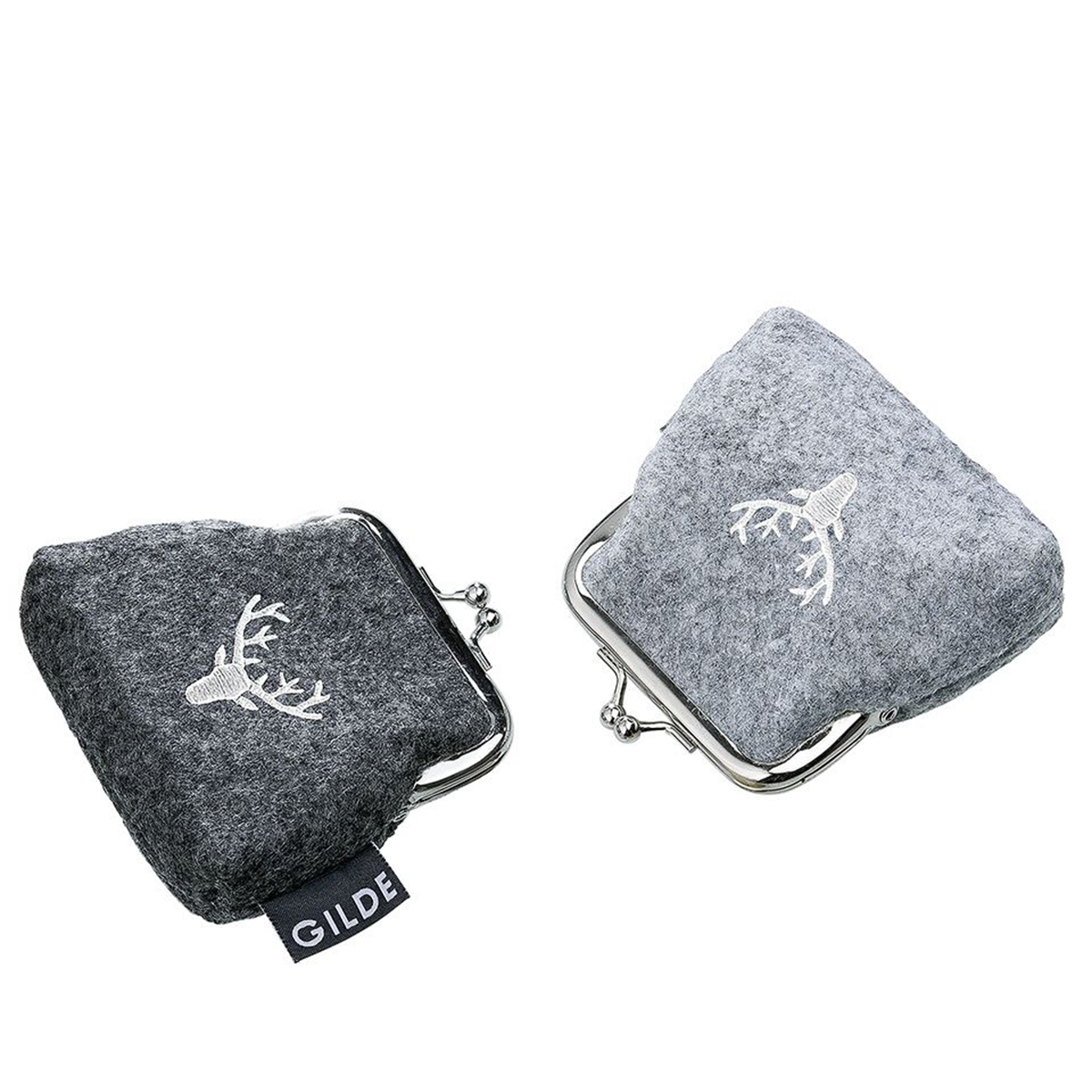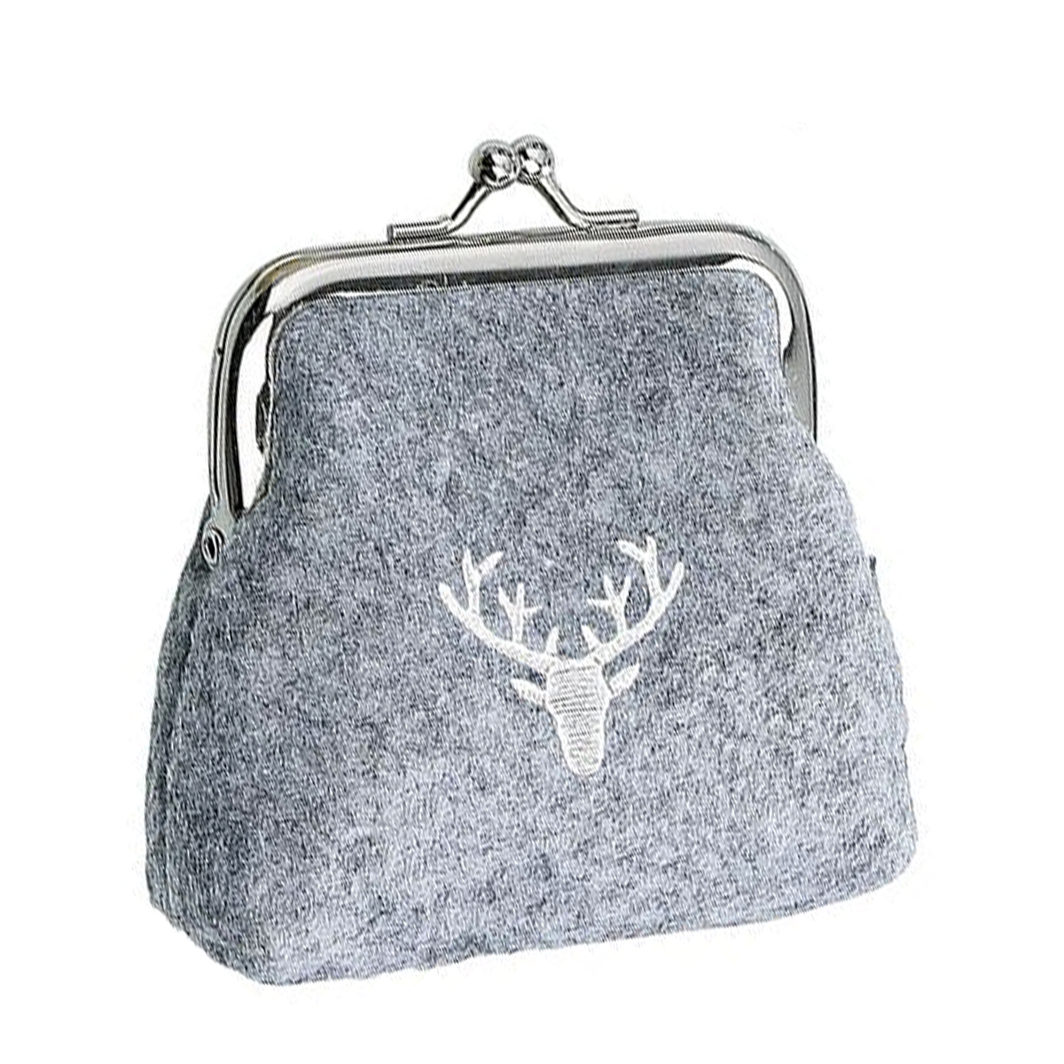 Geldbeutel Hirsch, Portemonnaie aus Filz mit Hirsch, Klippverschluß, helles grau, 10x10cm, Gilde Han