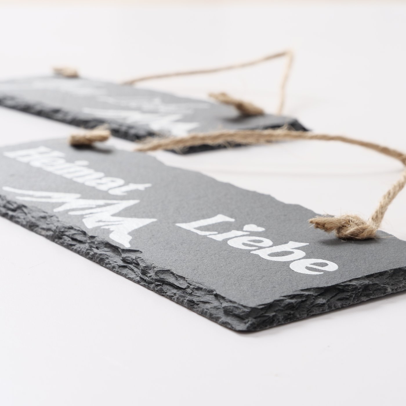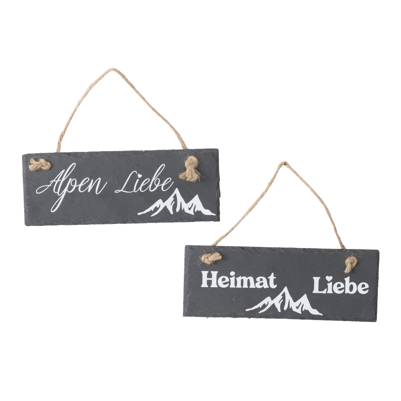 Hängetafel Heimatliebe mit Berge, Schiefertafel Sölden, 22x8cm, Boltze Home Collections