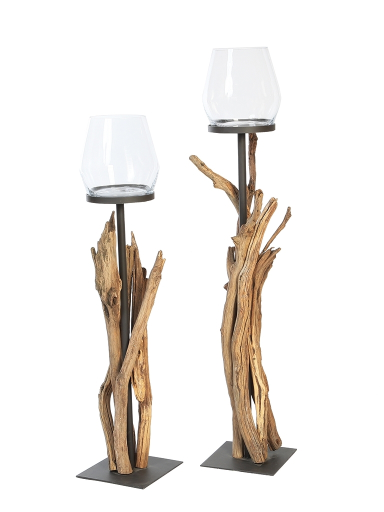 Holz Windlicht Raisa Naturholz, rustikales Eisenwindlicht mit Schwemmholz-Äste, 135cm, WMG Grünberger