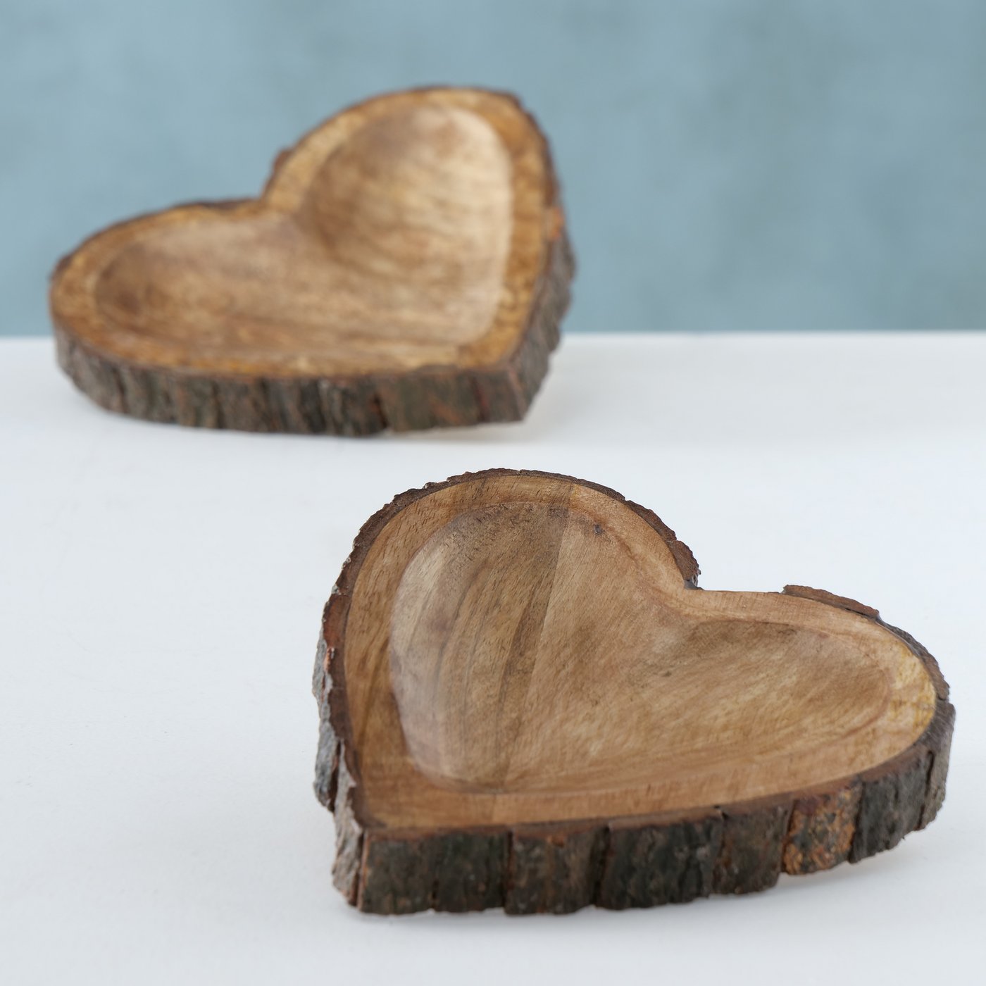 Holzschale Widdo Herzform, Naturholzschale mit Rinde, 20x20cm, Boltze Home Collections