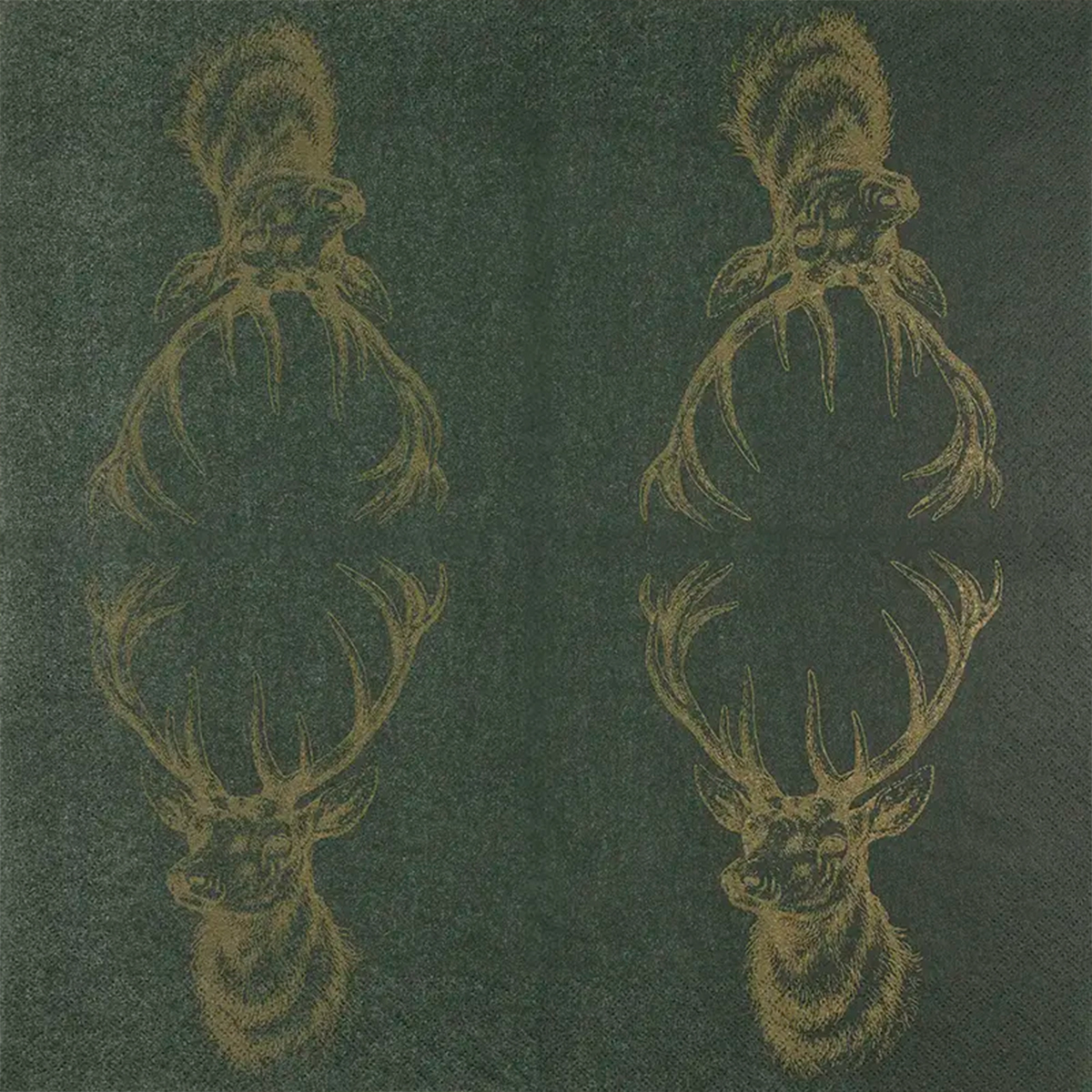 Home Fashion Papierservietten goldener Hirsch, grün, 33x33cm