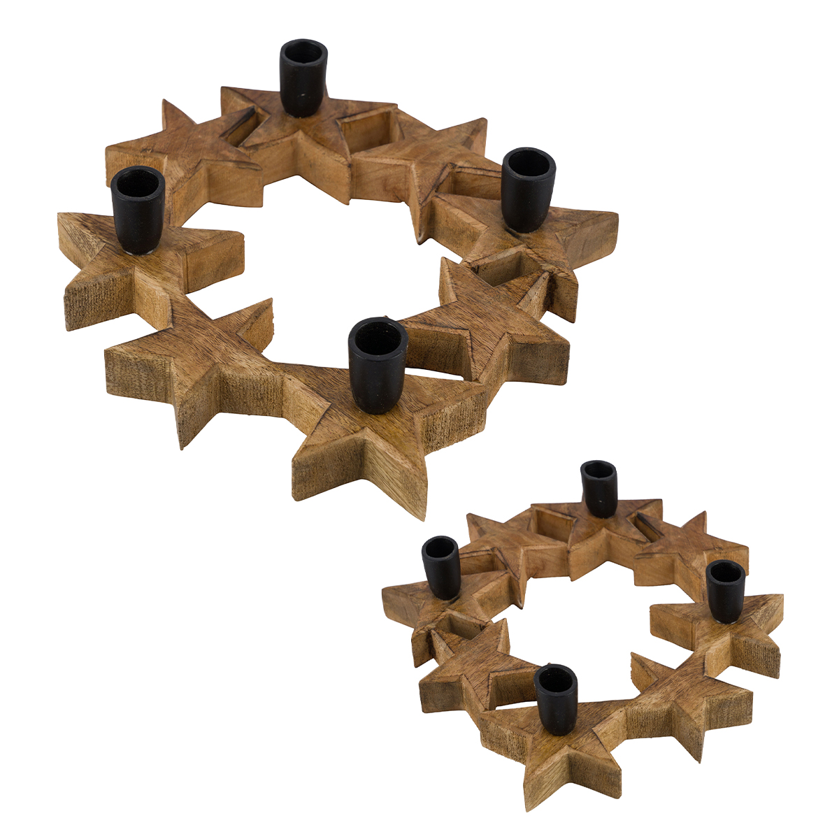 Kerzenhalter Sternenkranz, Holz-Metall-Kerzenhalter für 4 Stabkerzen in Sternform, natur-schwarz