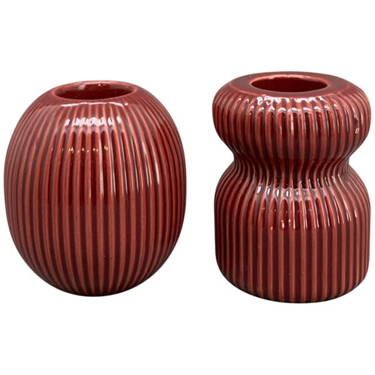 Kerzenständer Gent Ellipsoid, weinroter Kerzenhalter mit vertikaler Riffelung, Stabkerzenhalter aus Porzellan