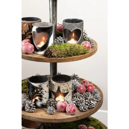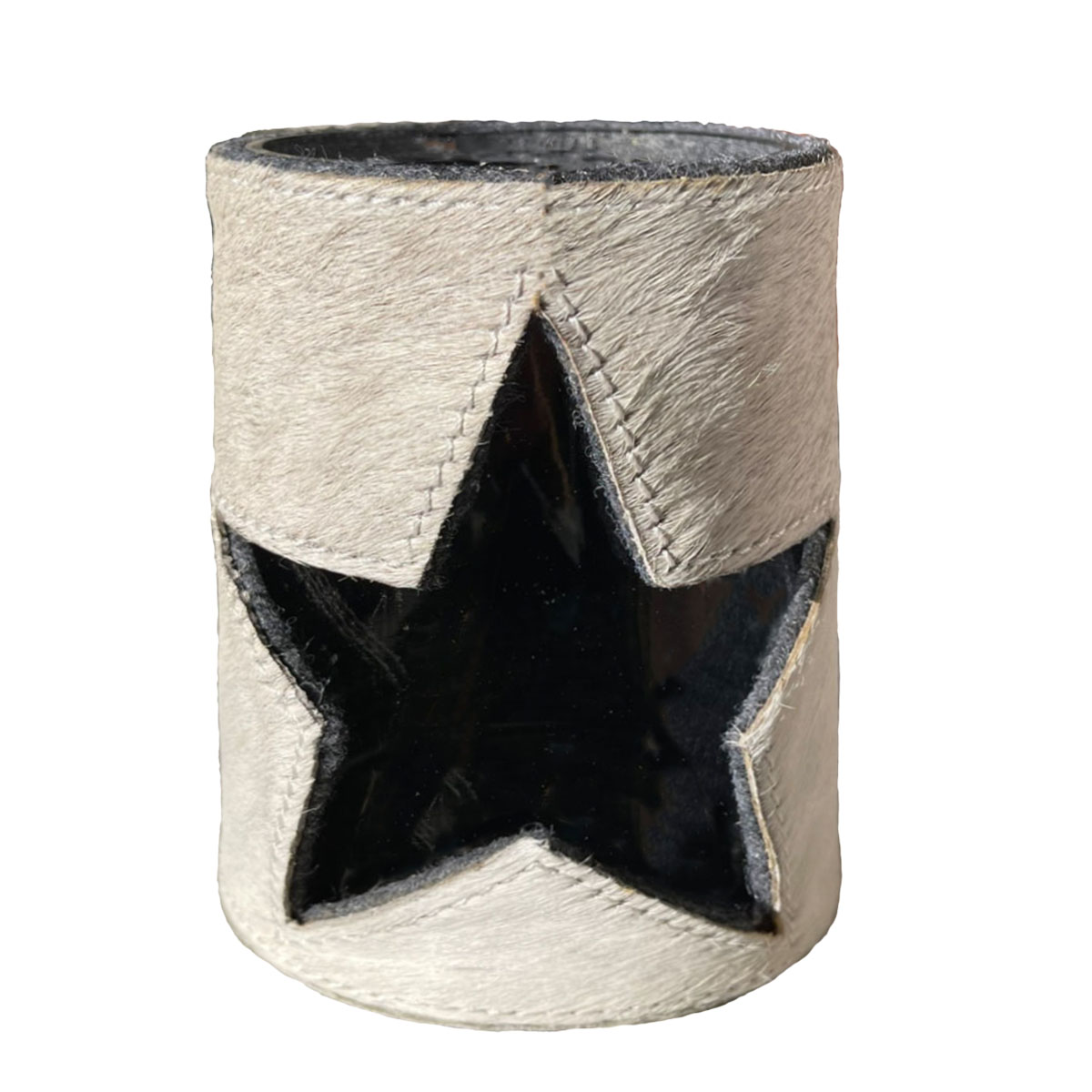 Kuhfell Windlicht Stern, grau-weiß, 11x15cm, Mars & More