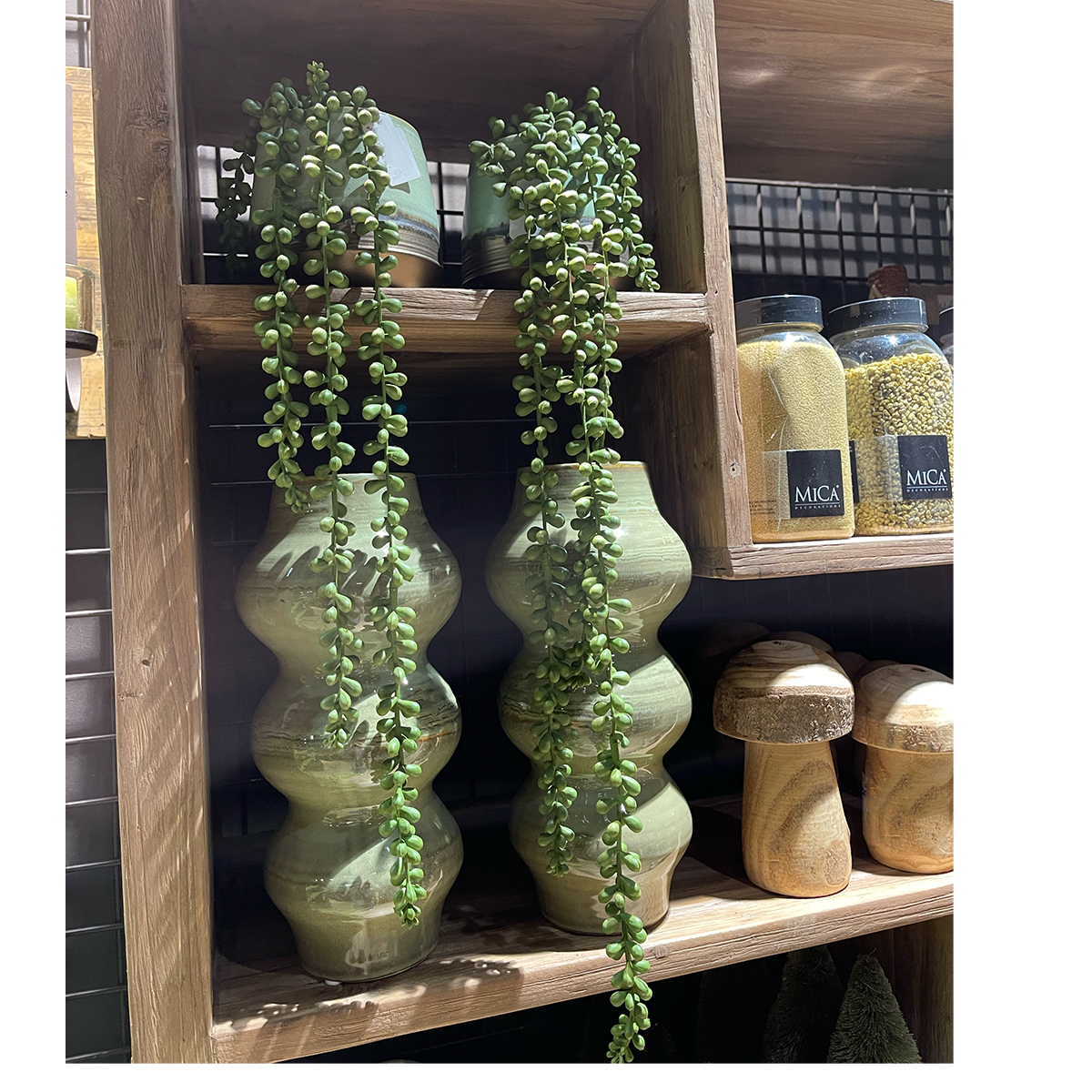 Kunstpflanze Perlenschnur, Erbsenpflanze grün, Senecio hängend, 71cm, Mica Decorations