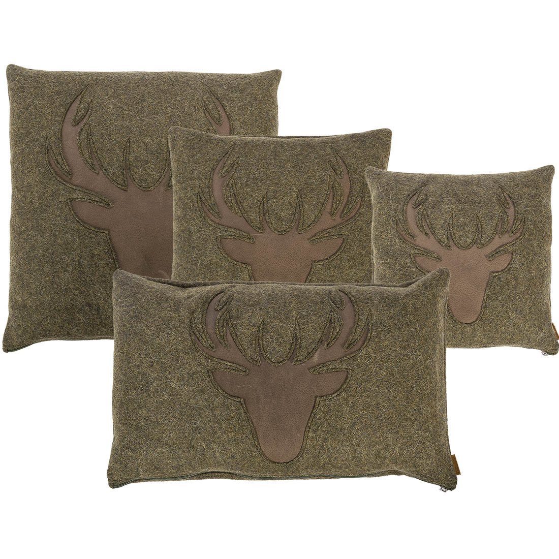 Landhaus Loden Kissen "Johann" großes moosgrünes Filzkissen mit Lederapplikation Hirsch, 52x52cm