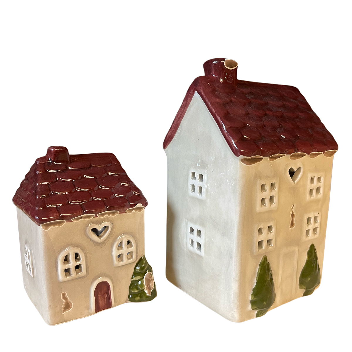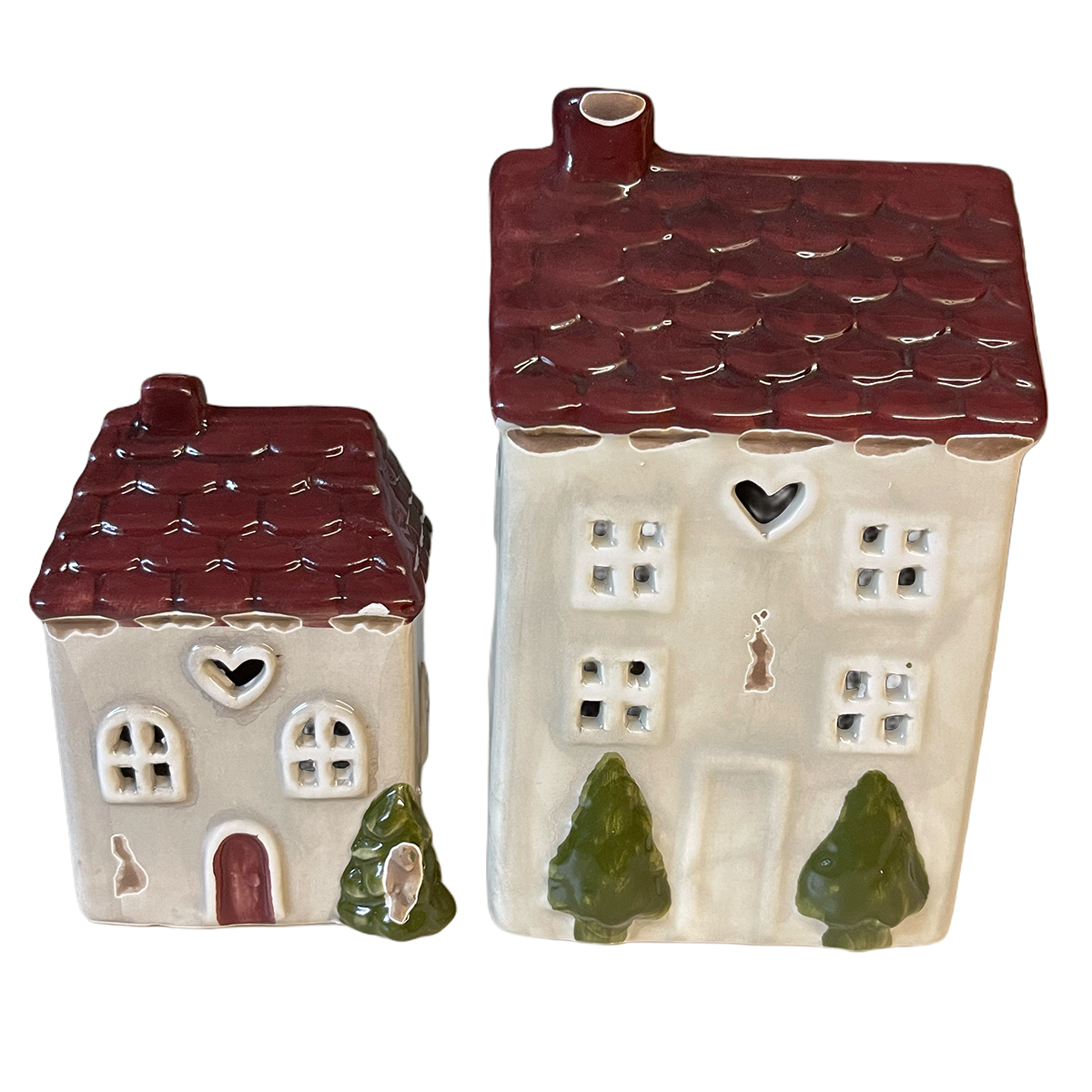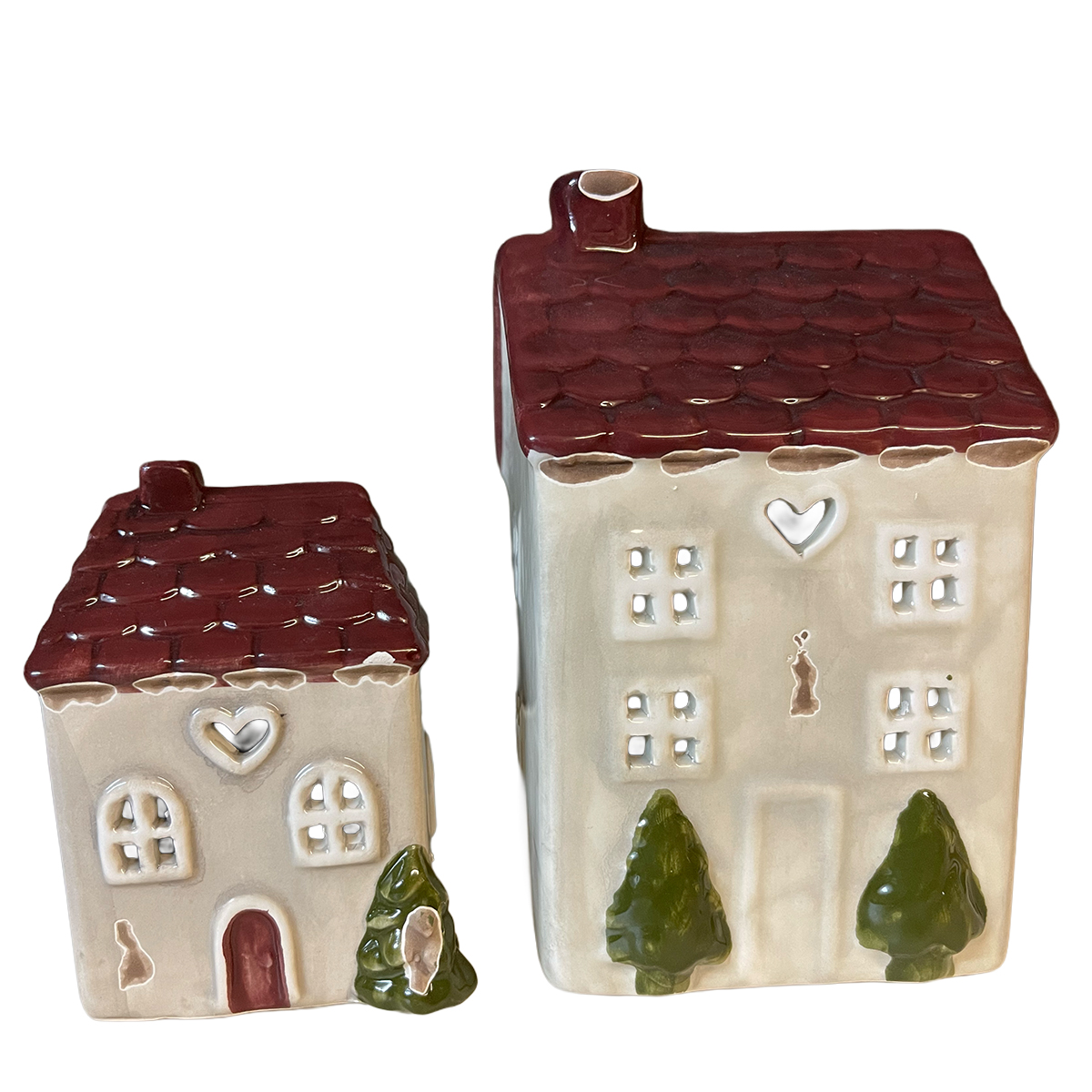 LED Haus Chrissie creme used look, Keramikhaus Landhaus mit Herz und 2 Bäume