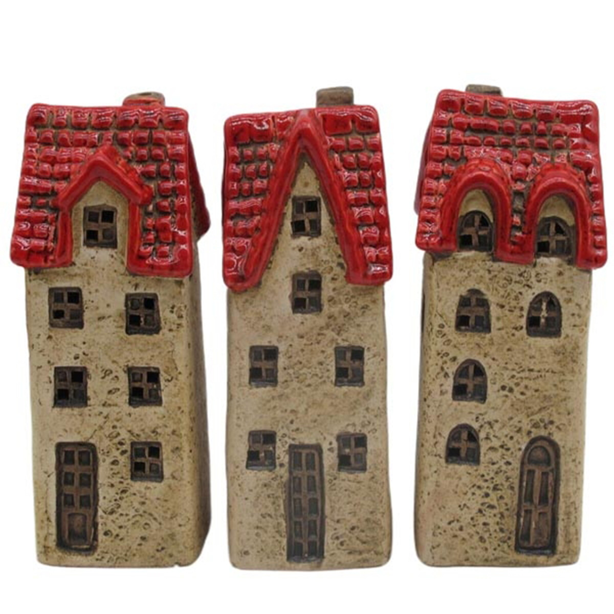 LED Haus Marta beige-rot, schmales Keramikhaus 15,5cm