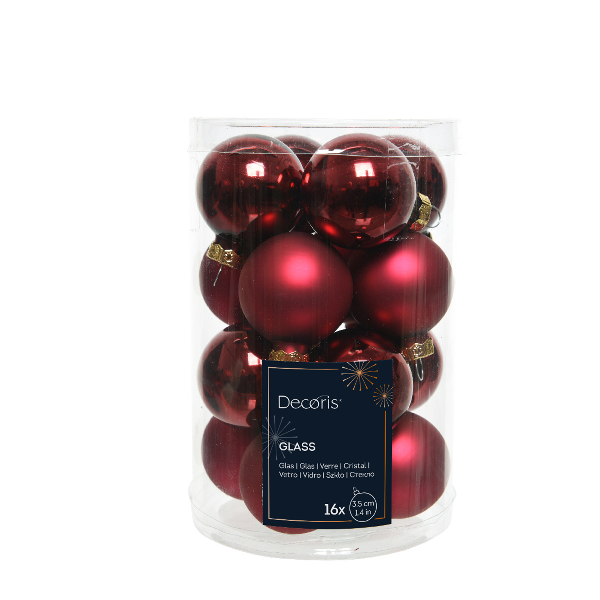 Mini Weihnachtsbaumkugeln aus Glas, ochsenblut glanz/matt, Ø3,5cm, 16St/Box, Decoris
