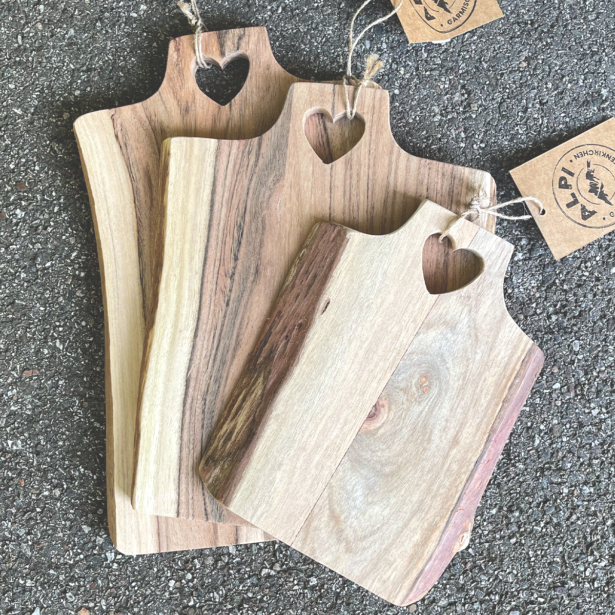 Natur Holzbrett mit Herz, Naturholzbrett Akazie, 25x20cm