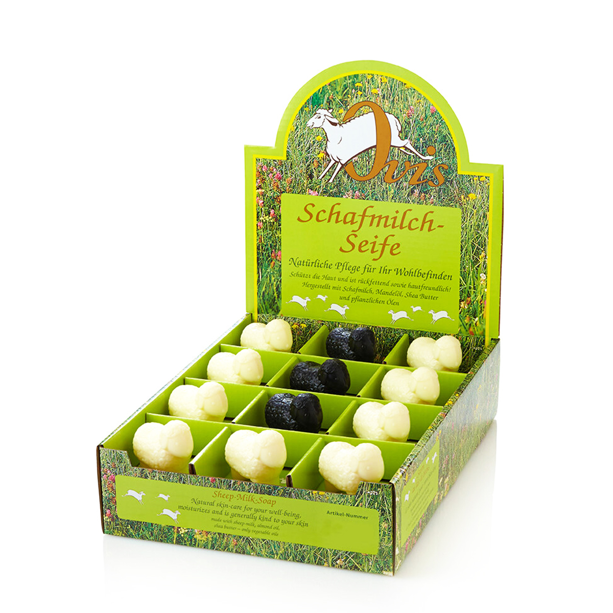 Ovis Schafmilchseife, Seife Schaf schwarz/weiß, 24St im Display sortiert: 18 weiße Schafe und 6... mehr
